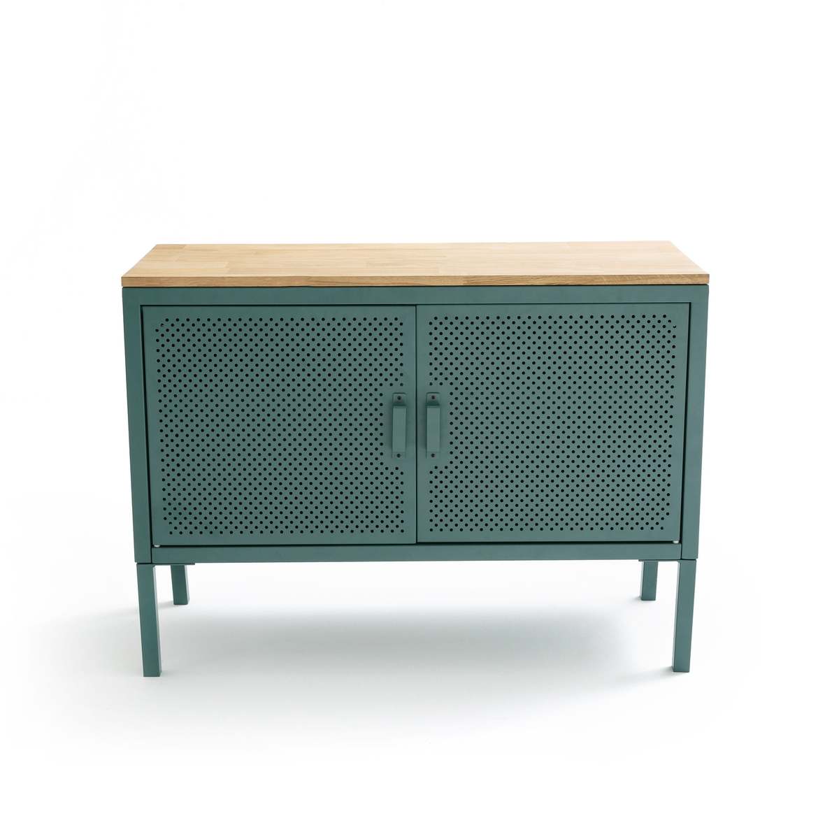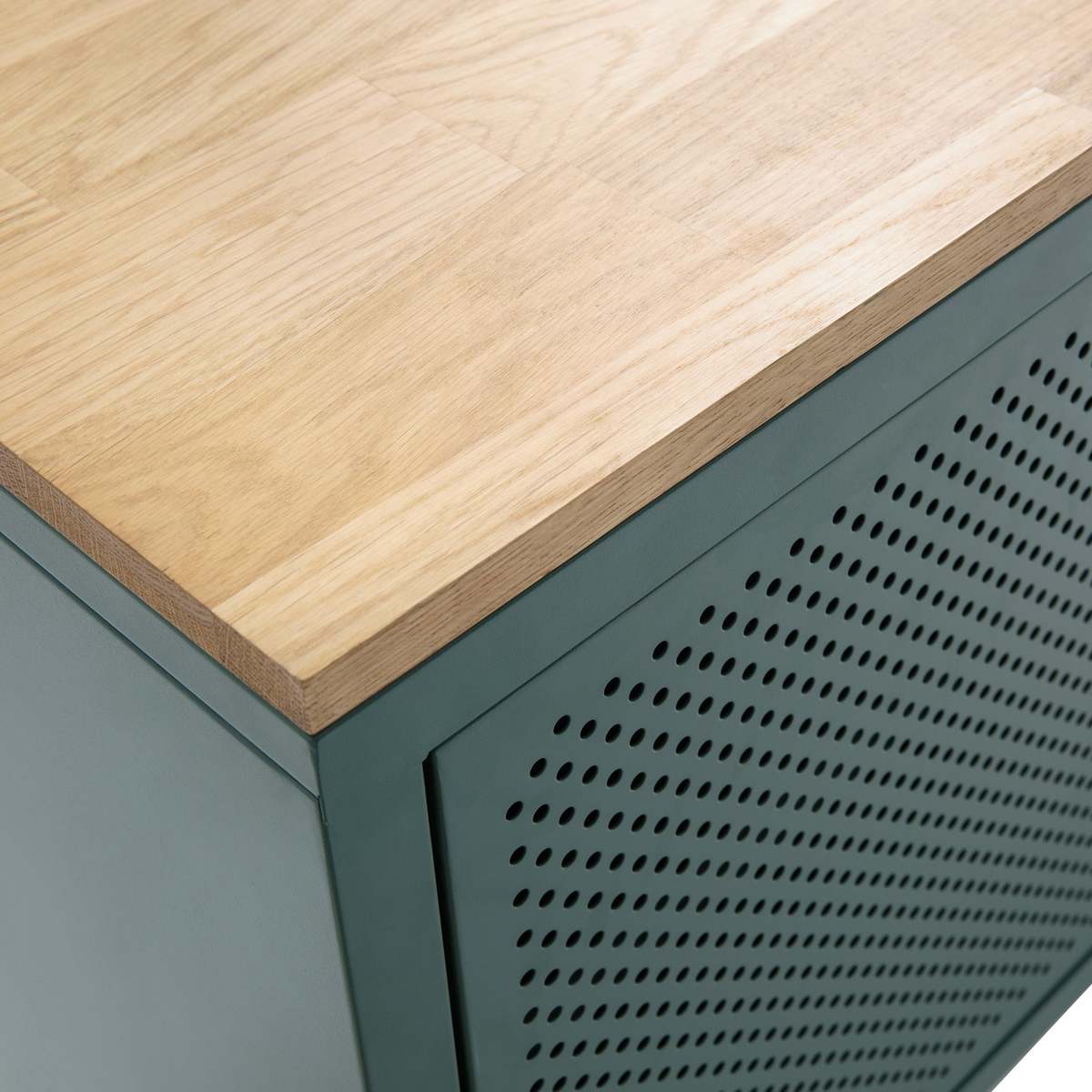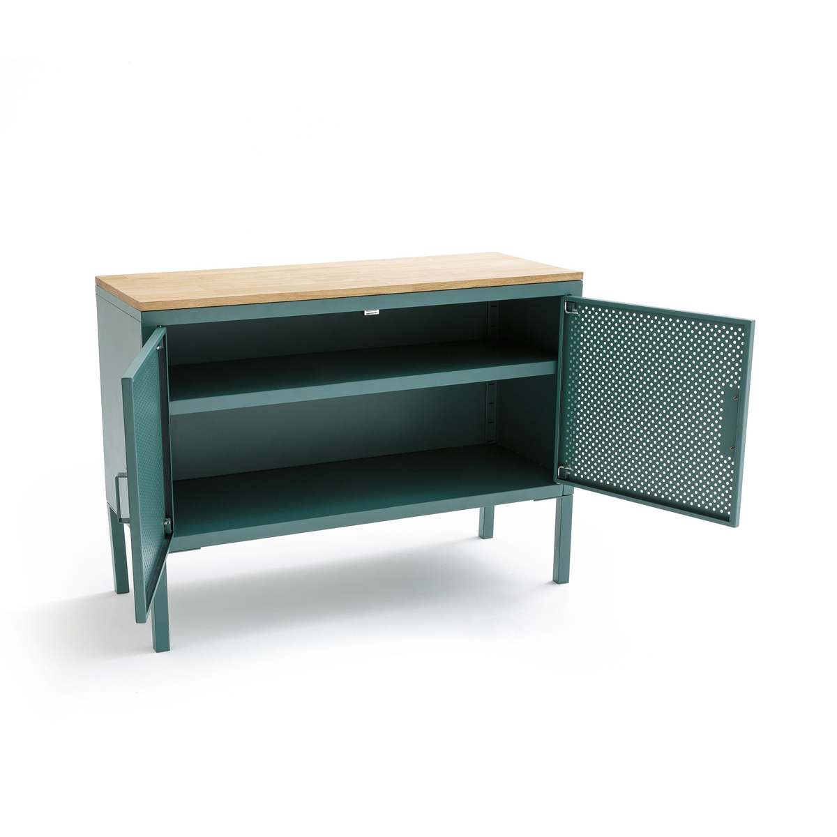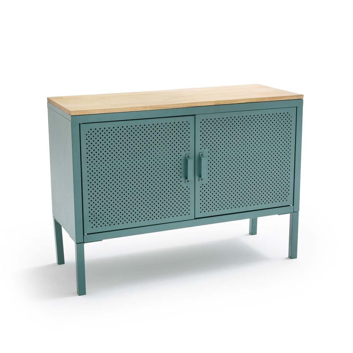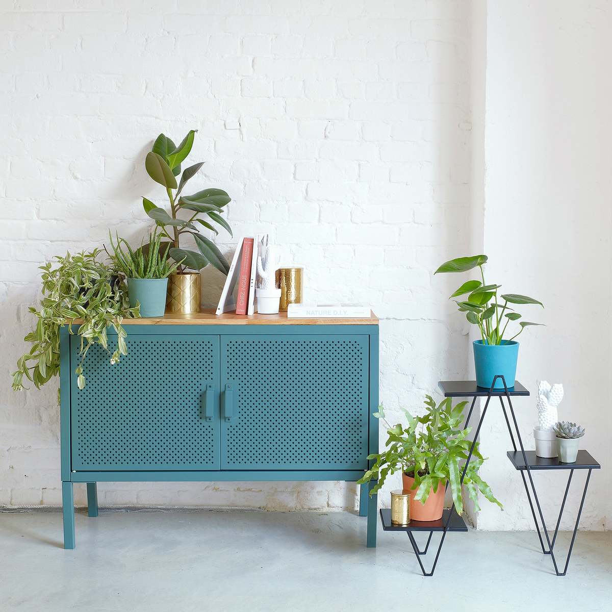 I love this sideboard’s clean, contemporary design with its perforated doors, making it both stylish and practical. It works particularly well in modern and Scandinavian interiors, where its simple silhouette and teal hue can add a fresh pop of colour. For styling tips, consider using it as a drinks bar in the living room or a stylish storage piece in the dining area. Pair it with minimalistic accessories or vintage ceramics to create an inviting but organised space. Its versatile size makes it easy to integrate into various room layouts, providing plentiful storage without cluttering the space.