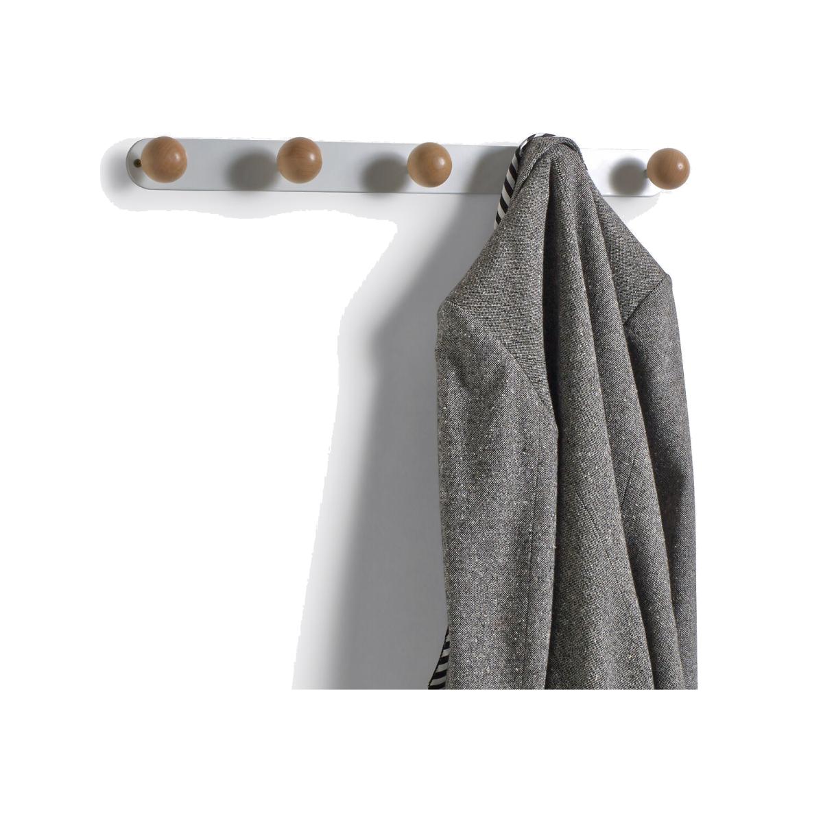 Functional and beautiful, this simple coat rack is perfect in a hallway or entrance. Product Details • 5-ball hook to be fixed to the wall (screws not supplied) • Your hook rack is self-assembly • 5 birch balls • Metal hook structure with mat finish. Dimensions • Length: 80cm • Depth: 7.5cm/3" • Height of hook : 5.2cm • WOOD FROM SUSTAINABLY MANAGED FORESTS. FSC® certified wood comes from forests that are environmentally, socially and economically well managed.