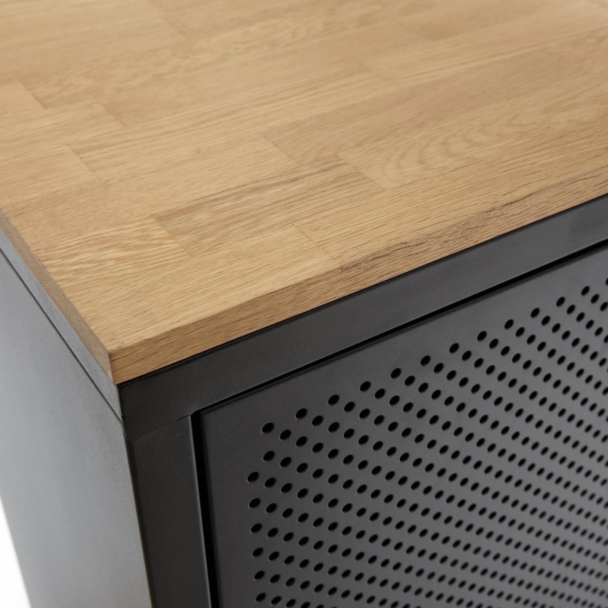 With its black metal structure, this Agama cabinet brings a modern, industrial feel to your interior – with a hint of warmth thanks to its solid oak top and drawer. A great combination of materials for a modern look!