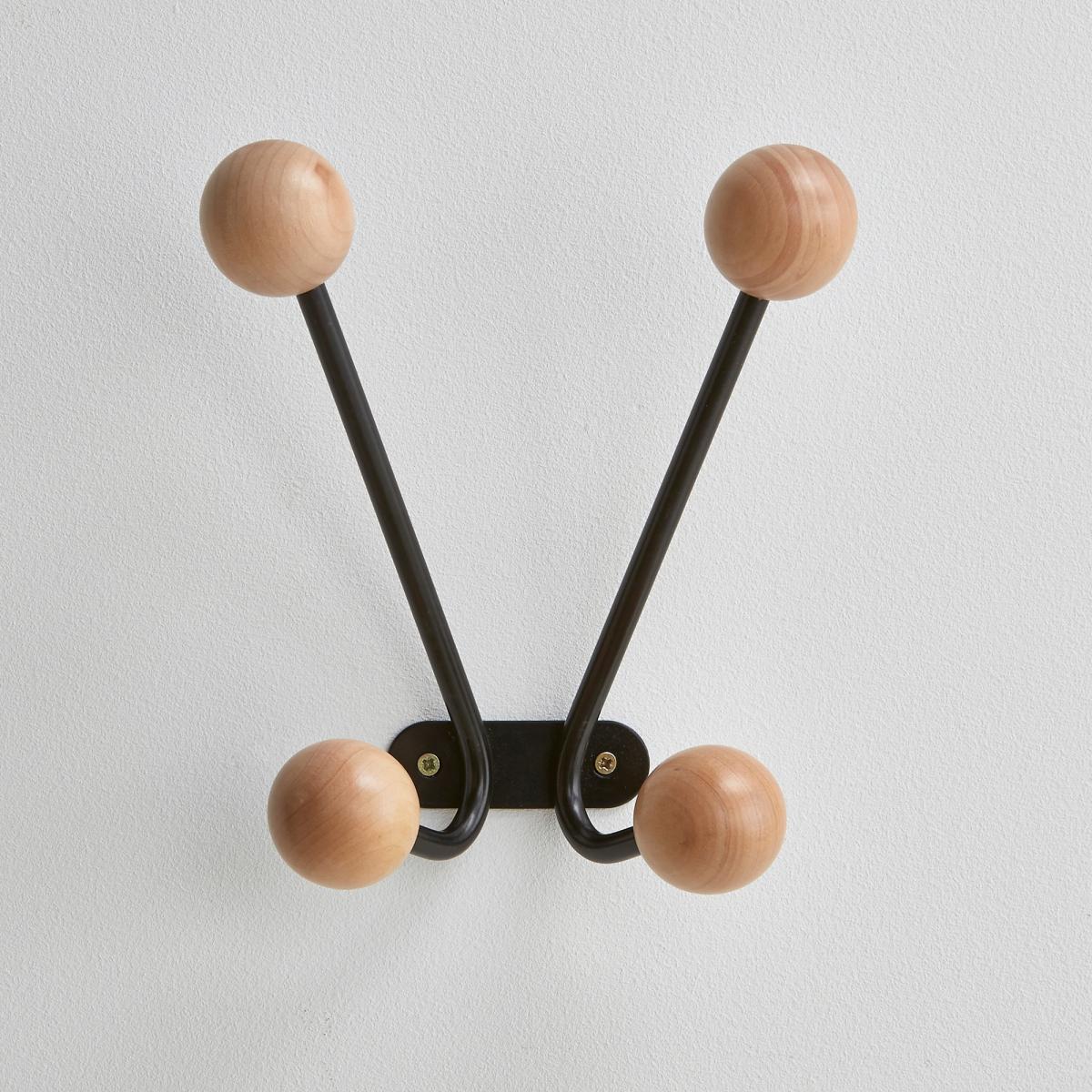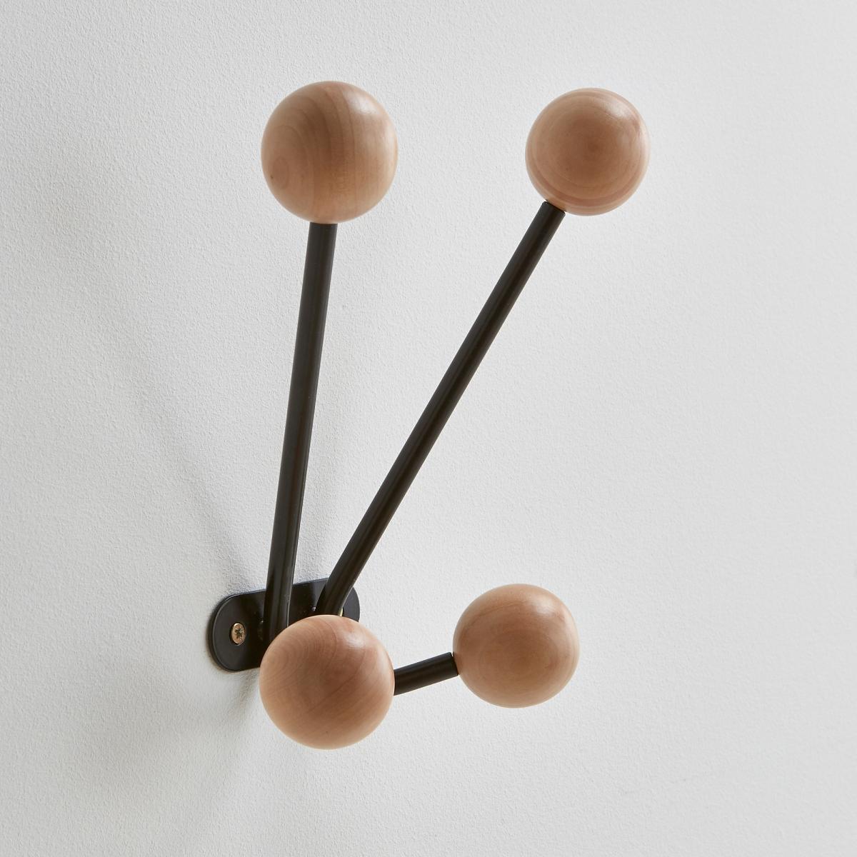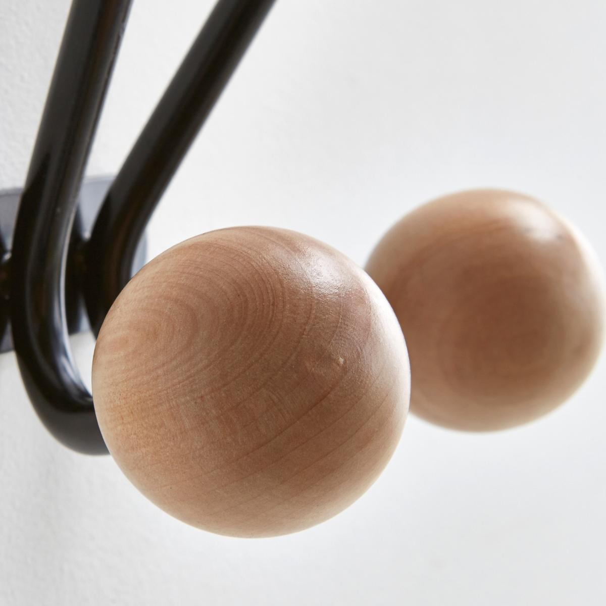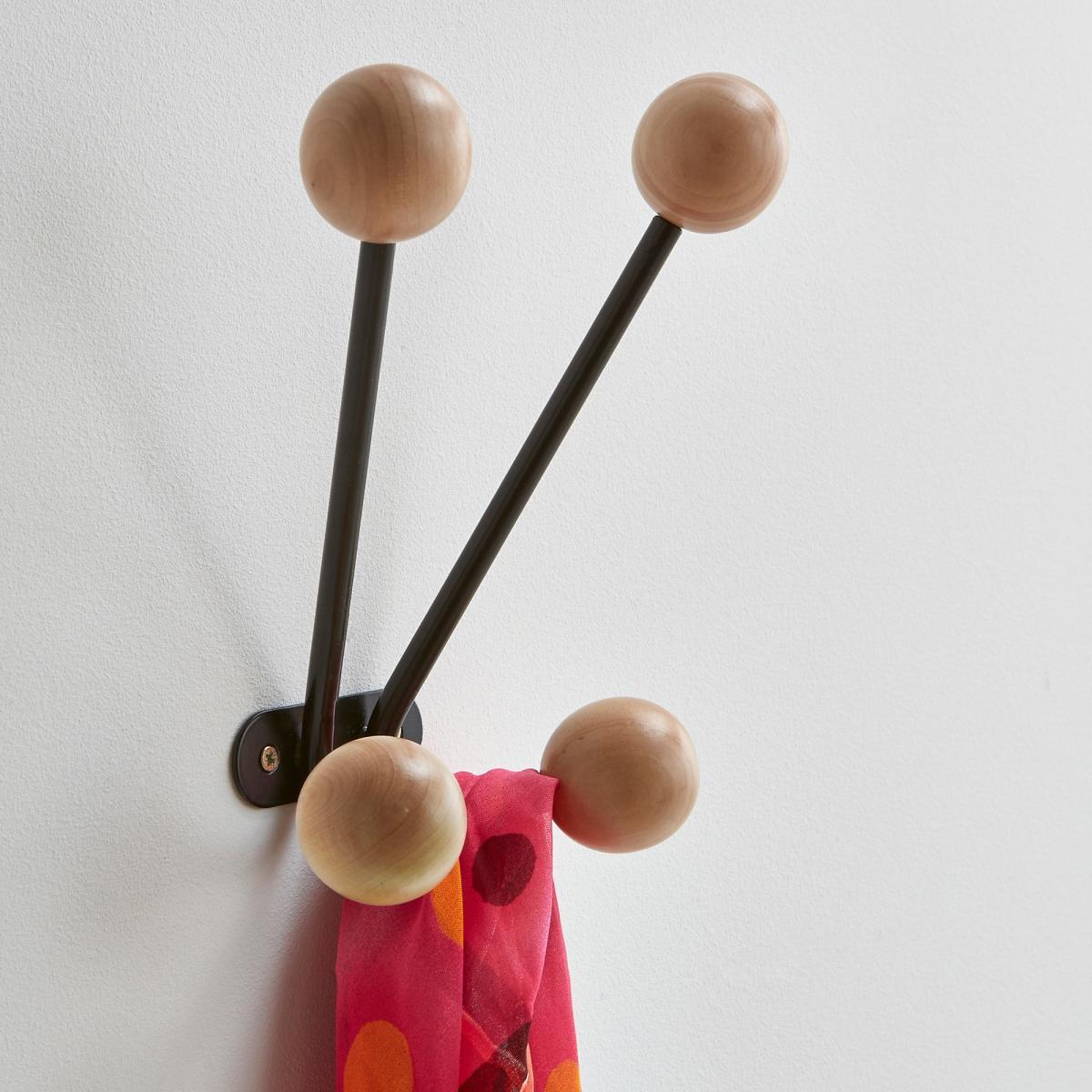 Agama wall rack with 4 spherical hooks at 2 heights for practical day-to-day storage! Natural birch wood hooks on a black or white metal rack. Requires fitting (fixings not supplied).