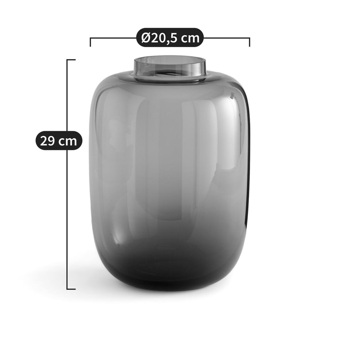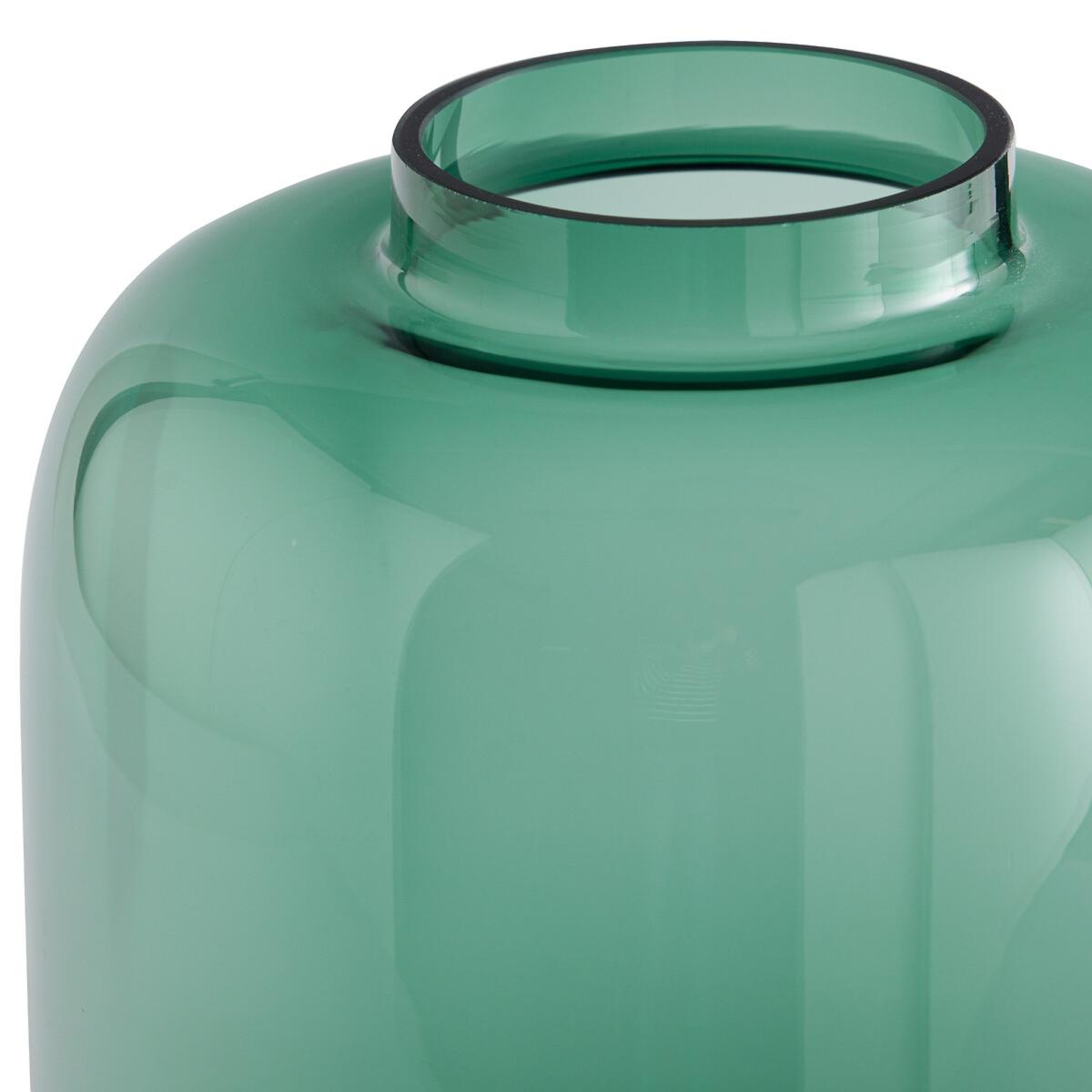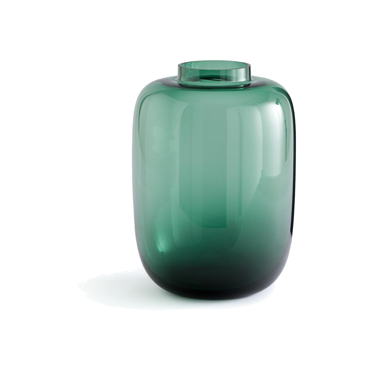 In a slightly graded green tone, the transparent Agata vase is a decorative object, designed to accommodate generous bouquets. Its curved shape is made from glass with a neck with a straight edge.