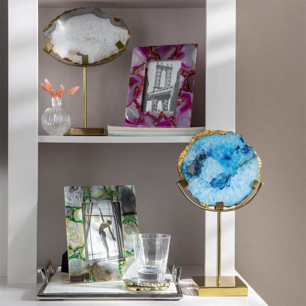 Add wow factor to your home with this agate ornament from Luxe. This ornament contains a single slice of natural agate. An intriguing look for the mantelpiece or on a shelf, each piece is unique thanks to the natural material used.