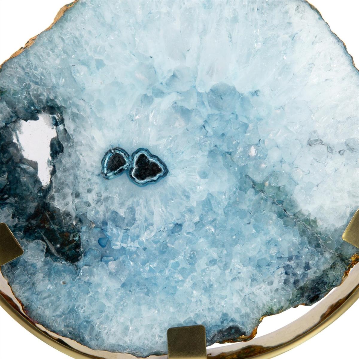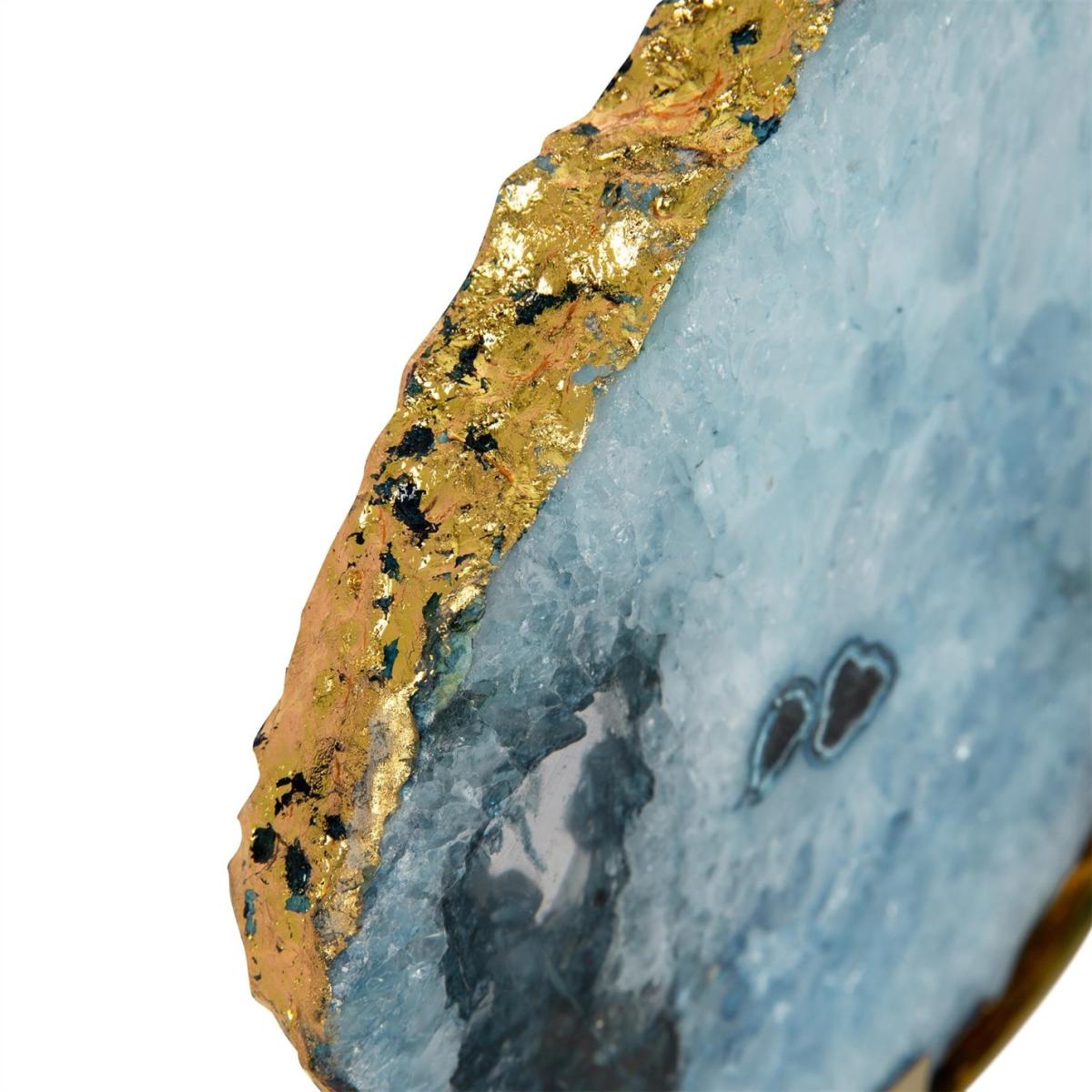 I love this blue agate slice because of its natural texture and subtle colour variations, which add an effortless touch of elegance. It works beautifully in contemporary and eclectic interiors, acting as a statement piece on sideboards, shelves, or coffee tables. For styling, consider pairing it with brass or matte-black accents to enhance its organic feel. It also looks striking when displayed with greenery or other natural materials, creating a balanced contrast. Keep it simple-let the stone be the star-while ensuring it’s placed in well-lit areas to highlight its translucent beauty.
