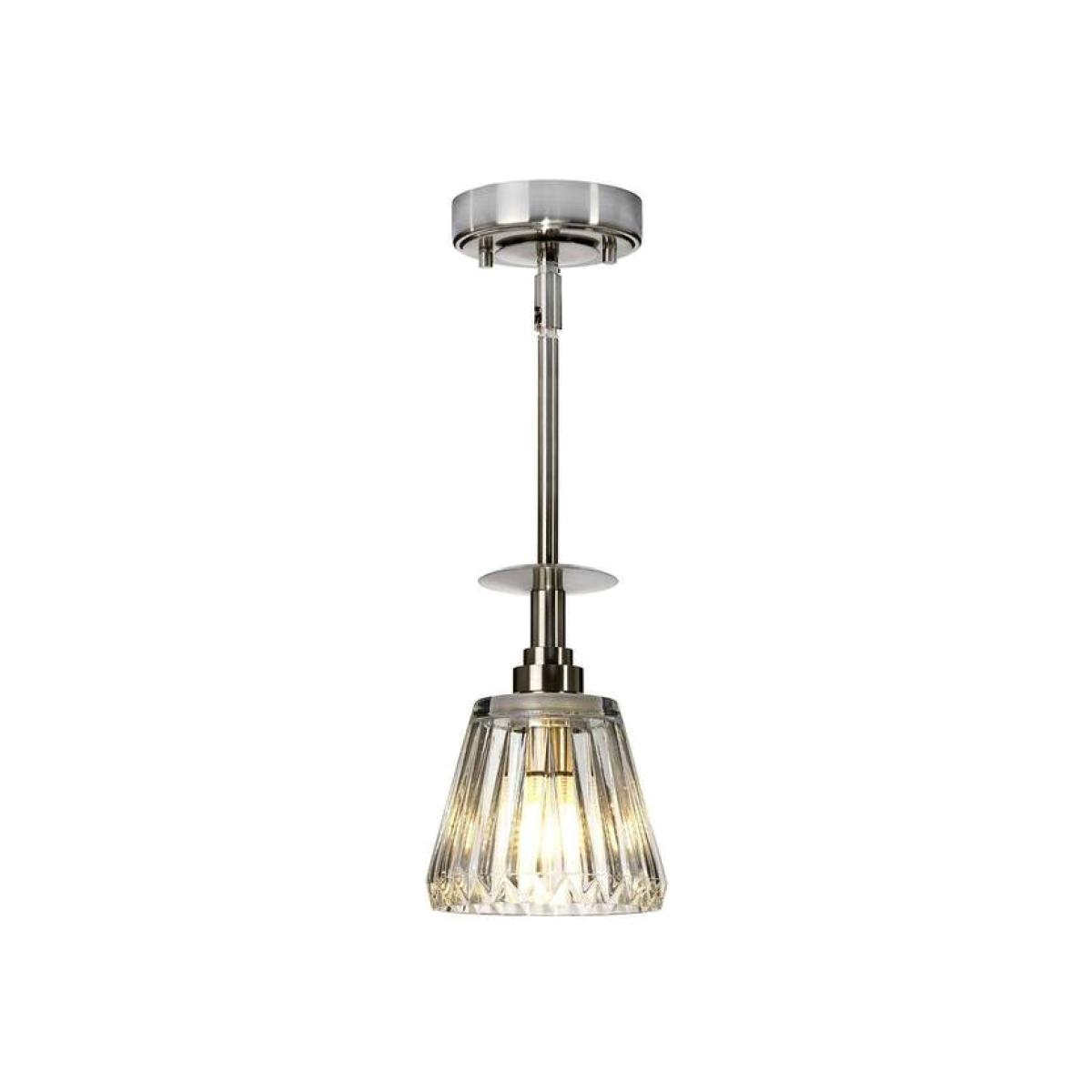 This range offers single and three light pendants, as well as matching wall lights to complete the look of the room. Available in a choice of two finishes brushed nickel and polished chrome. All fittings are rated IP44, making them suitable in bathroom settings as well as regular interior areas. The LED light provides plenty of illumination while keeping energy consumption down to a minimum. All lamps are included with the fittings. The wall lamps and three light pendants include an integrated LED lamp inside the clear acrylic centre rod. Ceiling lights are convertible from pendant to semi-flush fittings.