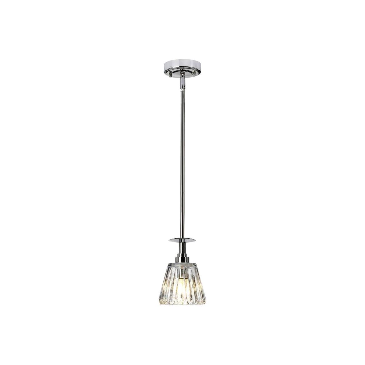 This range offers single and three light pendants, as well as matching wall lights to complete the look of the room. Available in a choice of two finishes brushed nickel and polished chrome. All fittings are rated IP44, making them suitable in bathroom settings as well as regular interior areas. The LED light provides plenty of illumination while keeping energy consumption down to a minimum. All lamps are included with the fittings. The wall lamps and three light pendants include an integrated LED lamp inside the clear acrylic centre rod. Ceiling lights are convertible from pendant to semi-flush fittings.
