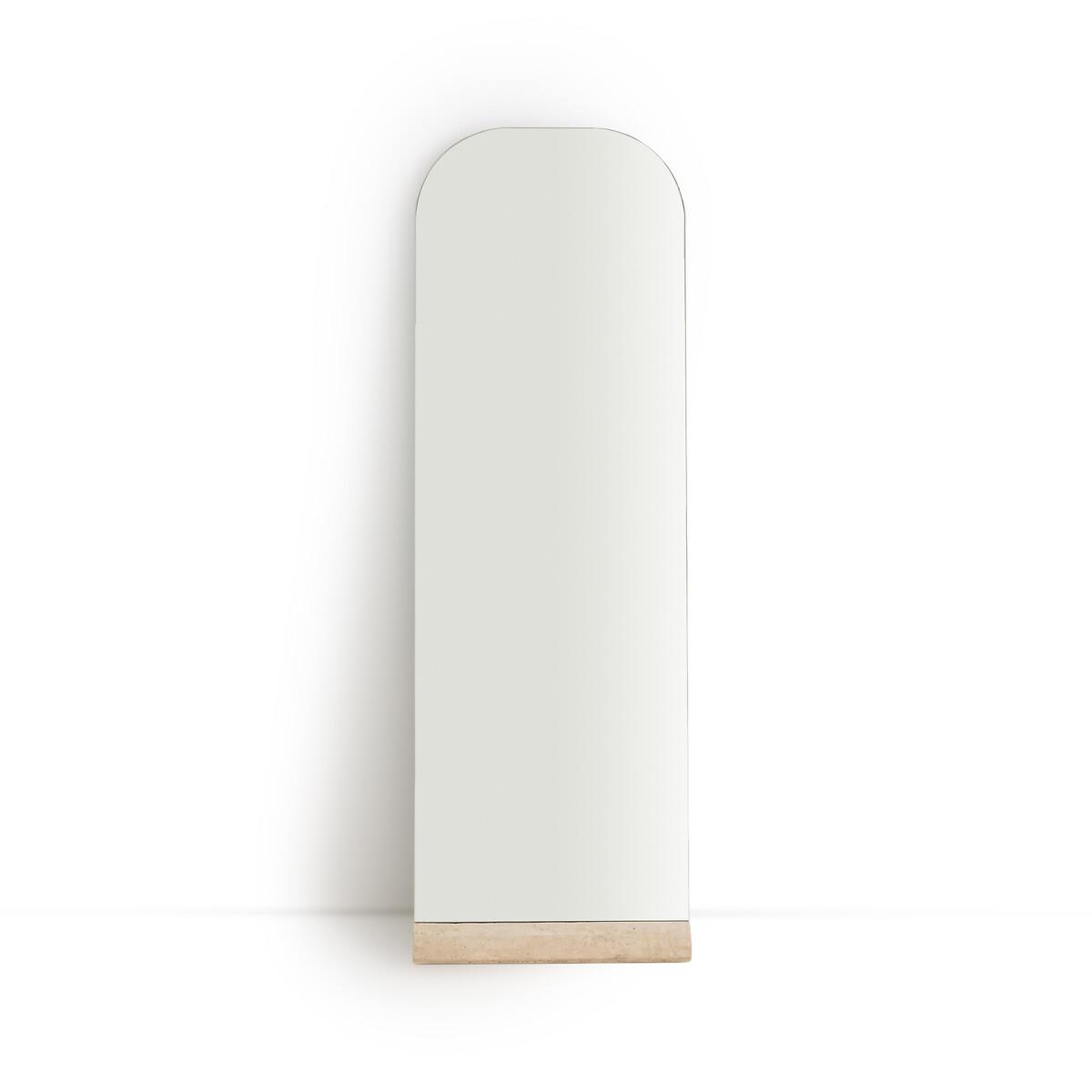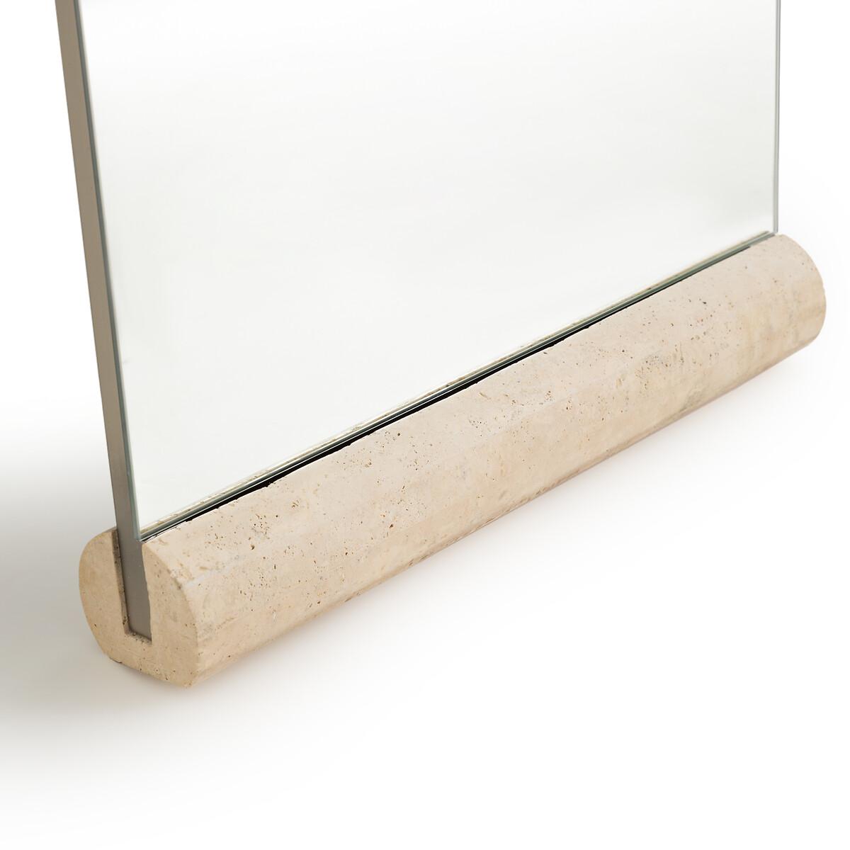 The Agav mirror is characterised by its arched design and mineral material. The harmonious association of the base in travertine, raw and matte, and a strapping in satin nickel finish metal is resolutely contemporary. Product Details • Mirror with satin nickel finish metal frame • Travertine base, each piece is unique (depending on the nature of the travertine) • Fixing bar for support (screws and dowels not supplied) • Standing mirror. Dimensions • Width: 55cm • Height: 169.5cm • Thickness: 10cmDelivery:. Sold pre-assembled. Available for home delivery. Note! Please check that all access points are large enough to accommodate your delivery (doors, stairs, lifts). Dimensions and weight of parcel1 parcelL18. 4 x H64 x D14cm. 32.65kg.
