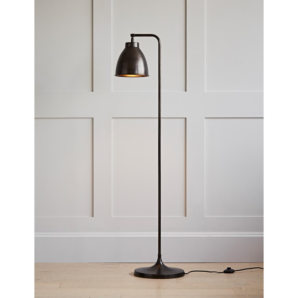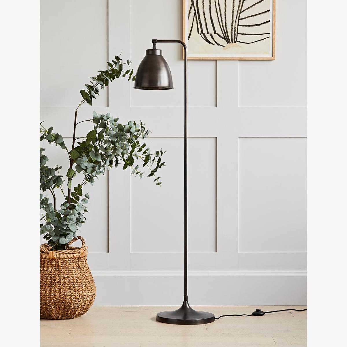 Illuminate your home with the Aged Bronze Muturi Floor Lamp. This industrial-style floor lamp features a timeless silhouette with an adjustable shade that allows you to direct the light wherever you need it most, making it perfect for creating a warm and welcoming atmosphere in any room of your home. Also available in an antique brass colourway.