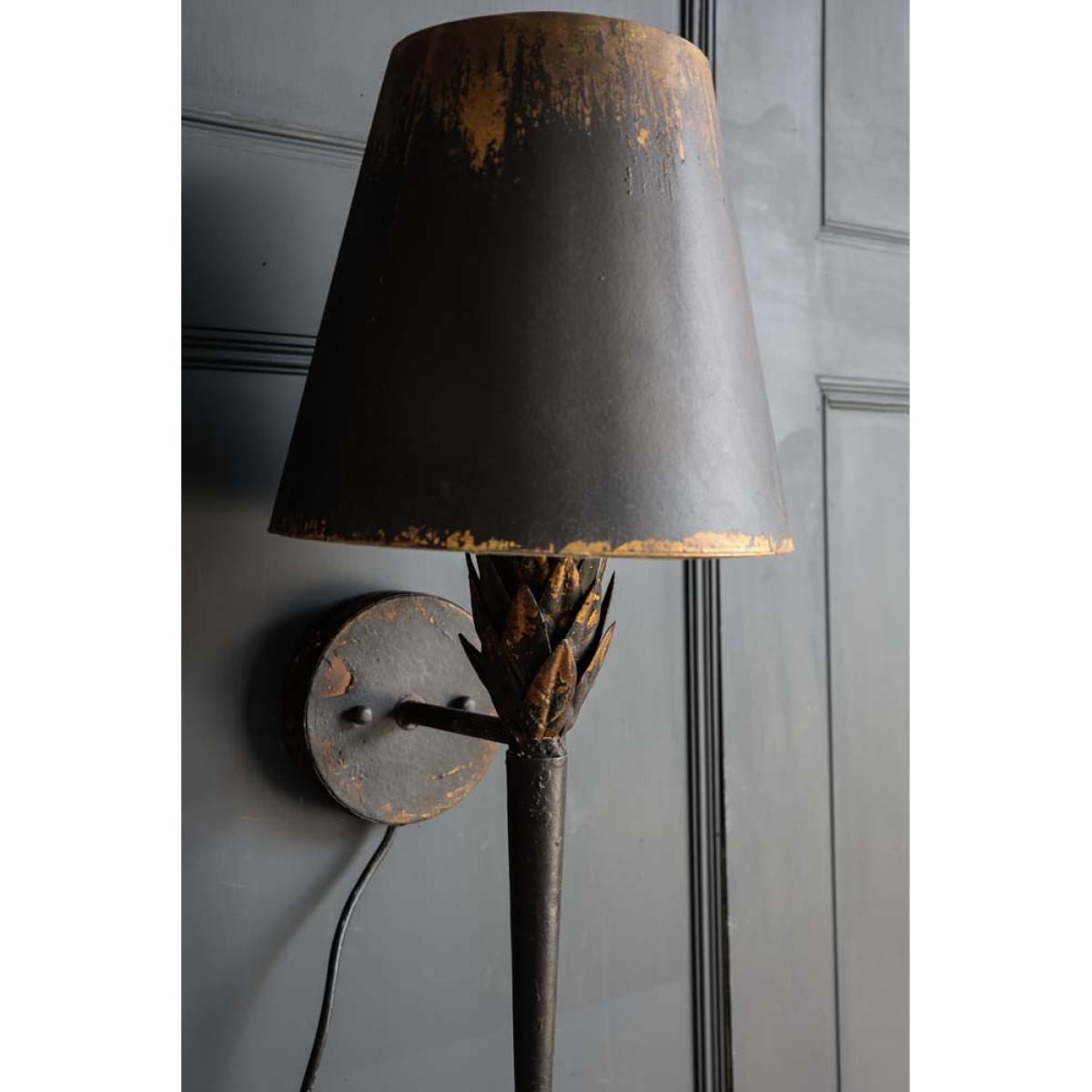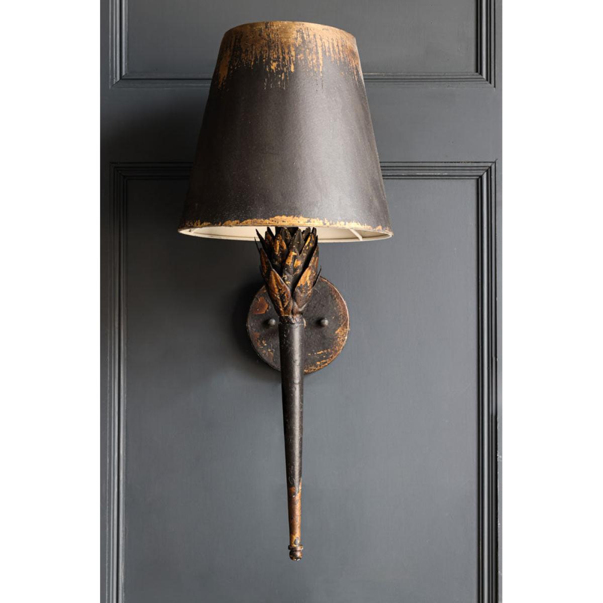 About The Aged Effect Black & Old Gold Torch Wall Light Showcasing gothic-style mood lighting, the Aged Effect Black & Old Gold Torch Wall Light will create a dramatic atmosphere in your interior scheme. Featuring a brass torch shaped light fixture with alluring rustic details, this quirky wall sconce would look spectacular styled in three a row in any corner of your home. Featuring a cone-shaped shade, this antique gold wall light will illuminate your home with an intriguing charm. This extraordinary wall sconce measures 63cm in height, 25cm in width and 29cm in depth overall. Please note, a bulb is not included. Why We Think You’ll Love The Black And Gold Wall Light This boldly beautiful wall torch light will accentuate the theatrical character of a dark and daring scheme with statement style. Promising to be a unique feature in your home, we love how the distressed details pop against the stark black finish of the torch. Not for the faint-hearted, we think this decorative wall light is utterly daring and delightful, so what’s not to love?! Where To Style The Antique Wall Light Use multiple antique wall sconces around a living room or dining room to create a low lit ambience that exudes an intimate feel. This wall light would command instant attention displayed above kitchen countertops, lighting the surfaces up with a touch of dark and daring charm.