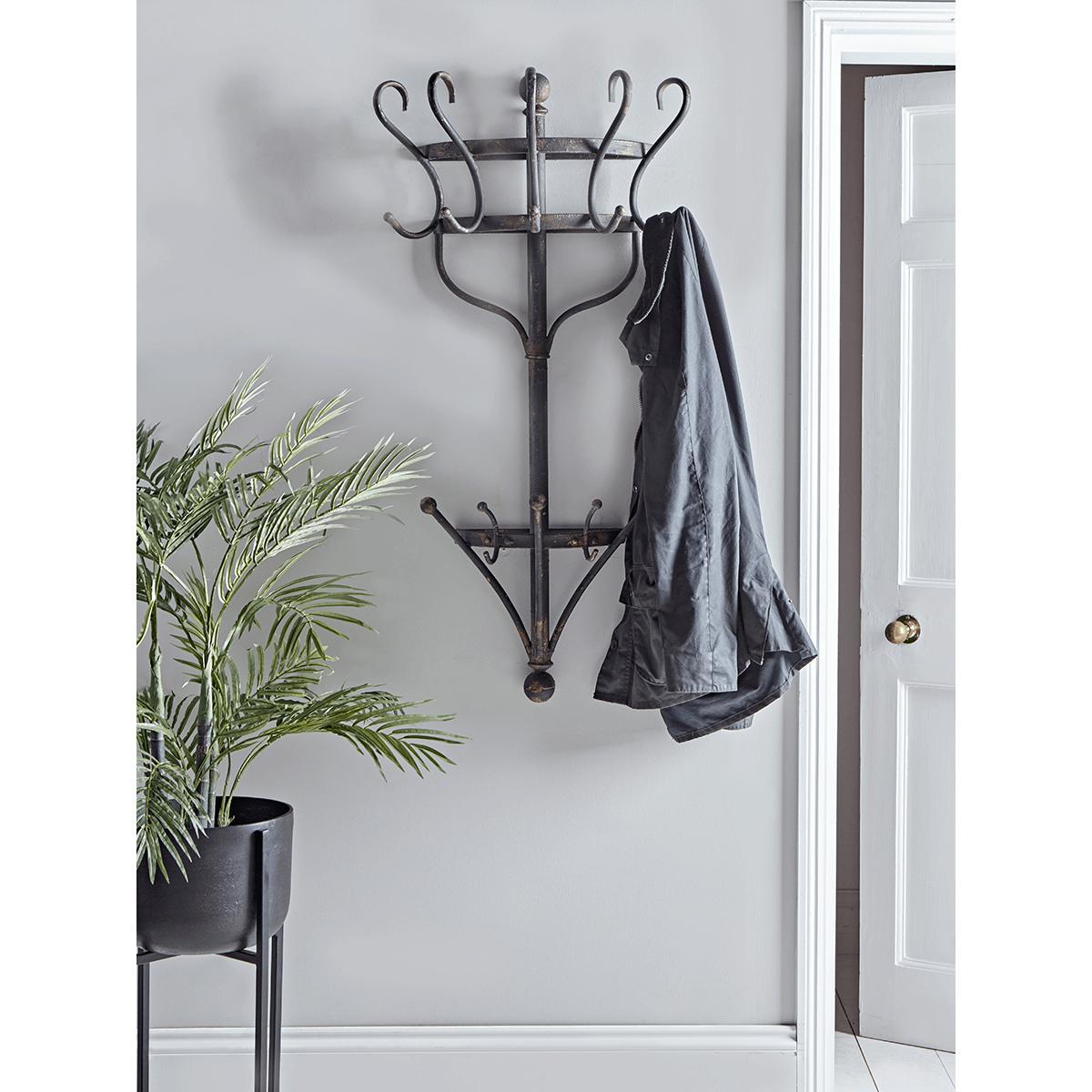 I love this aged metal wall mounted coat rack for its industrial charm and functional design. It works particularly well in rustic, vintage, or urban interiors where its weathered finish adds character and a sense of history. Practical styling tips include pairing it with neutral or grey tones to highlight its metal texture, and grouping it with other vintage-inspired accessories for a cohesive look. Keep everyday essentials on the hooks for easy access, and consider placing a statement basket or tray nearby to collection small items like keys, gloves, or hats. Its wall-mounted design helps save space while adding visual interest to your hallway or utility area.