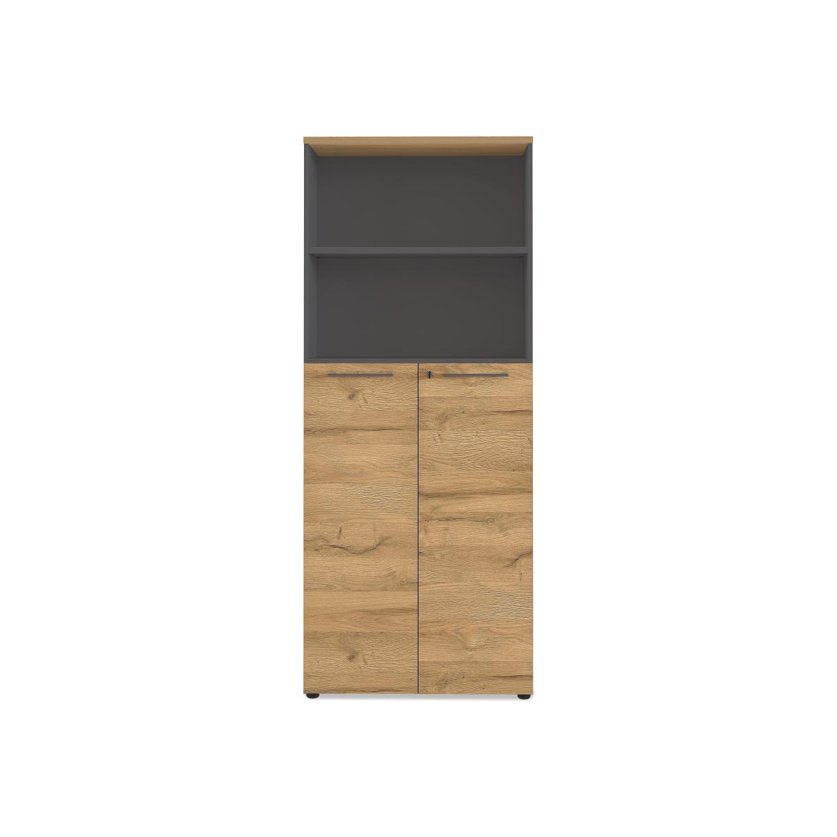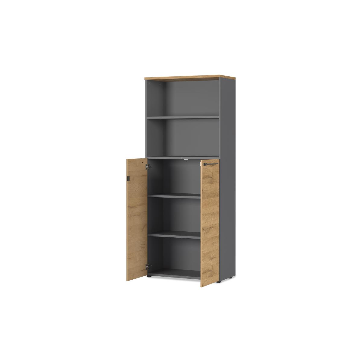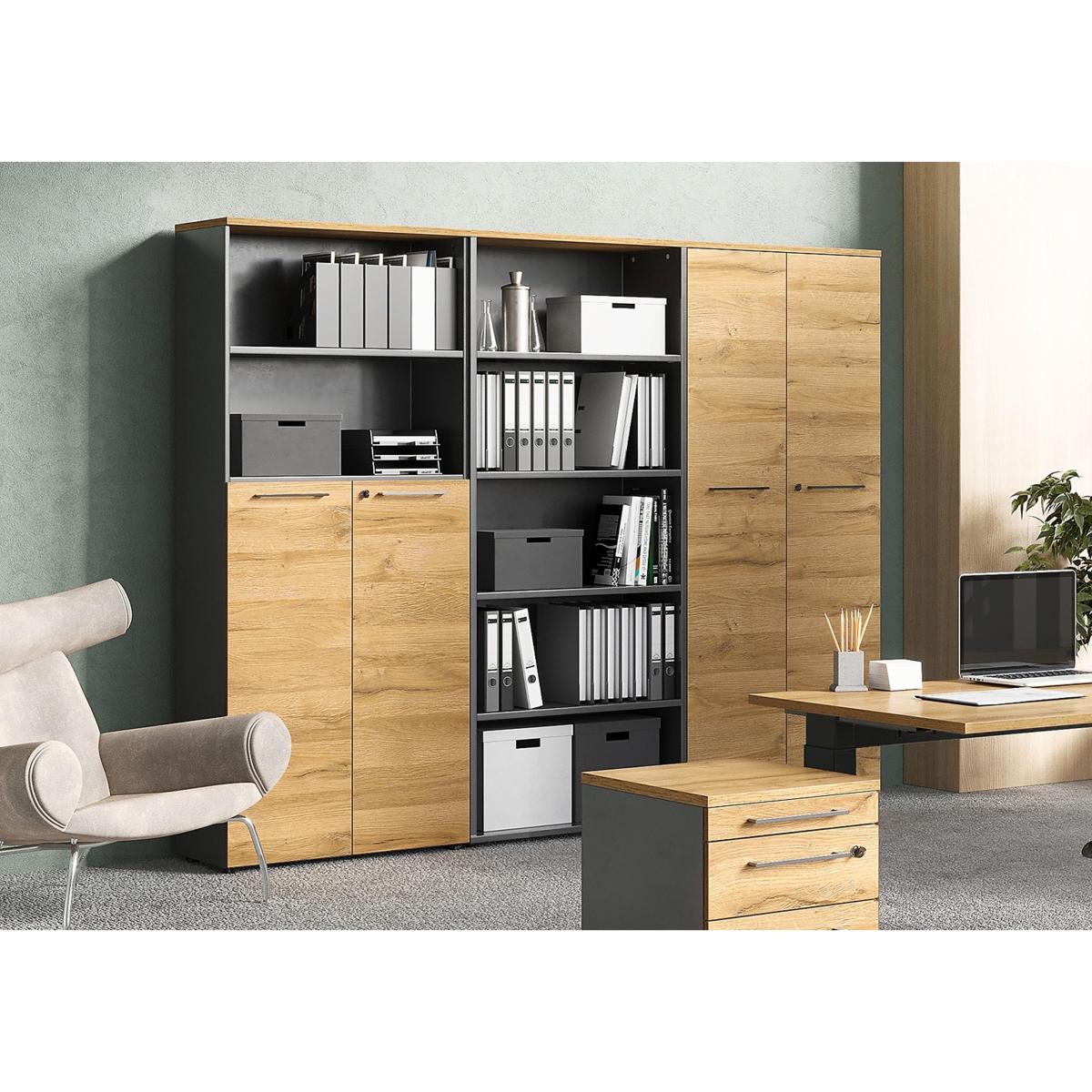 Our Agenda range of home office furniture puts your comfort and convenience first – and adds more than a touch of contemporary style. With height adjustable desks, spacious corner desks, bookcases and storage cabinets with adjustable shelves, and even a rolling pedestal unit, everything about the collection speaks to ergonomic and ingenious design. The oak-effect and graphite grey look suits any space, and as every piece has a durable melamine finish, you can count on this office furniture to withstand knocks, bumps and scratches and stay looking great. Designed and made in Germany, Agenda is part of the home office collection at Furniture Village. This filing cabinet with shelving cleverly combines closed storage with shelf space for display. In a small home office, this may be the only storage unit you need. Why you'll love it Filing cabinet with shelving has all the storage space you need. A contemporary look for your home office. Authentic natural oak-effect and graphite grey finish. Scratch-resistant melamine surface with shock-resistant edges. Silent soft-closing doors with metal handles. Made in Germany. A Furniture Village online exclusive. This filing cabinet with shelving is part of our Agenda range. What you need to know Easy self-assembly required, full instructions included. Closed storage has 2 adjustable shelves. Open storage has 1 adjustable shelf. Melamine resin finish. Shop the Agenda range for modular mix and match home office furniture. WARNING!Furniture can tip over unexpectedly and cause injury. This item must be fixed to a wall using the anti-tip kit provided. Be sure to use the correct wall fixings suitable for the walls in your home. Furniture Village is not able to fix anti-tip devices for you. Seek professional advice if you are unsure.