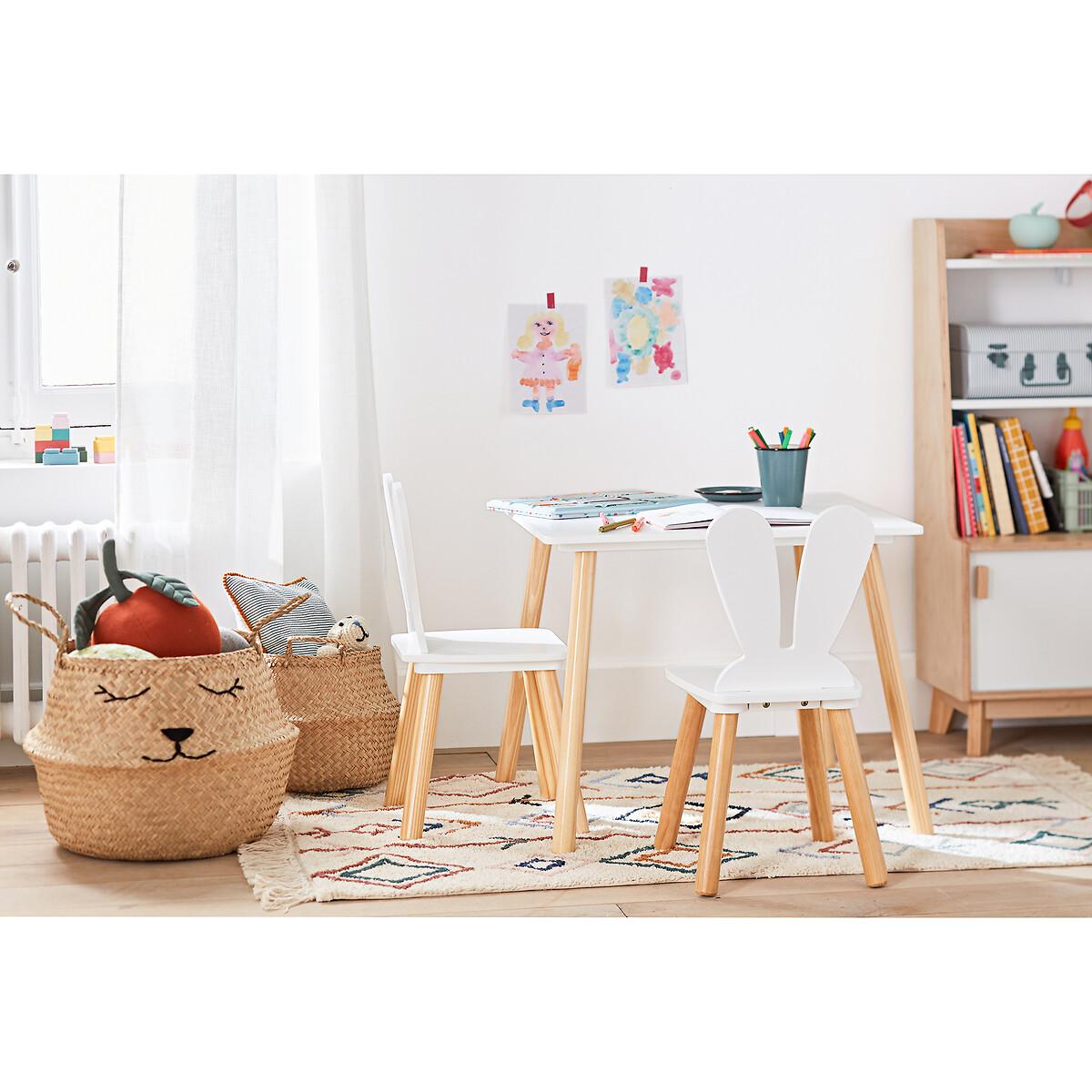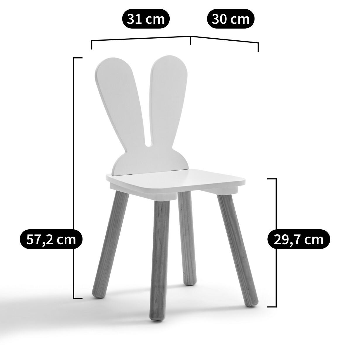 Playful, solid, stable... Adapted to the size of toddlers, the Aglaee chair features bunny ears as the backrest. Combine it with the table of the same name to create a cosy corner dedicated to creative pursuits. A space for imagination. Product Details • Lacquered MDF and solid pine legs, nitrocellulose varnish finish. Dimensions • Width: 31cm • Height: 57.2cm • Depth: 30cm • Seat:L29 x H29.7 x D27cmDelivery:. Assembly required. Available for home delivery. Note! Please check that all access points are large enough to accommodate your delivery (doors, stairs, lifts).Dimensions and weight of parcel1 parcel • L38.5 x H12 x D34.5cm. Weight 2.6kg