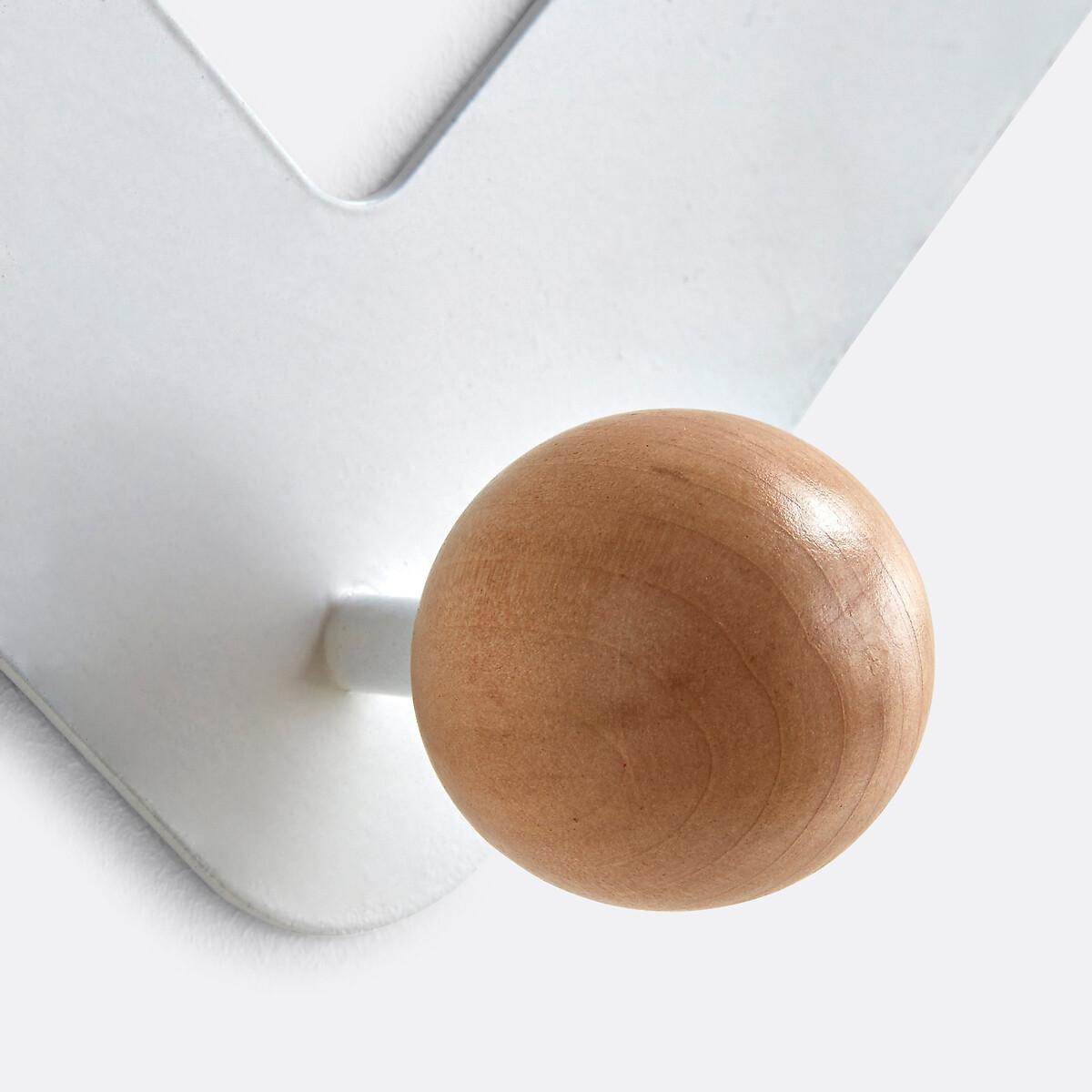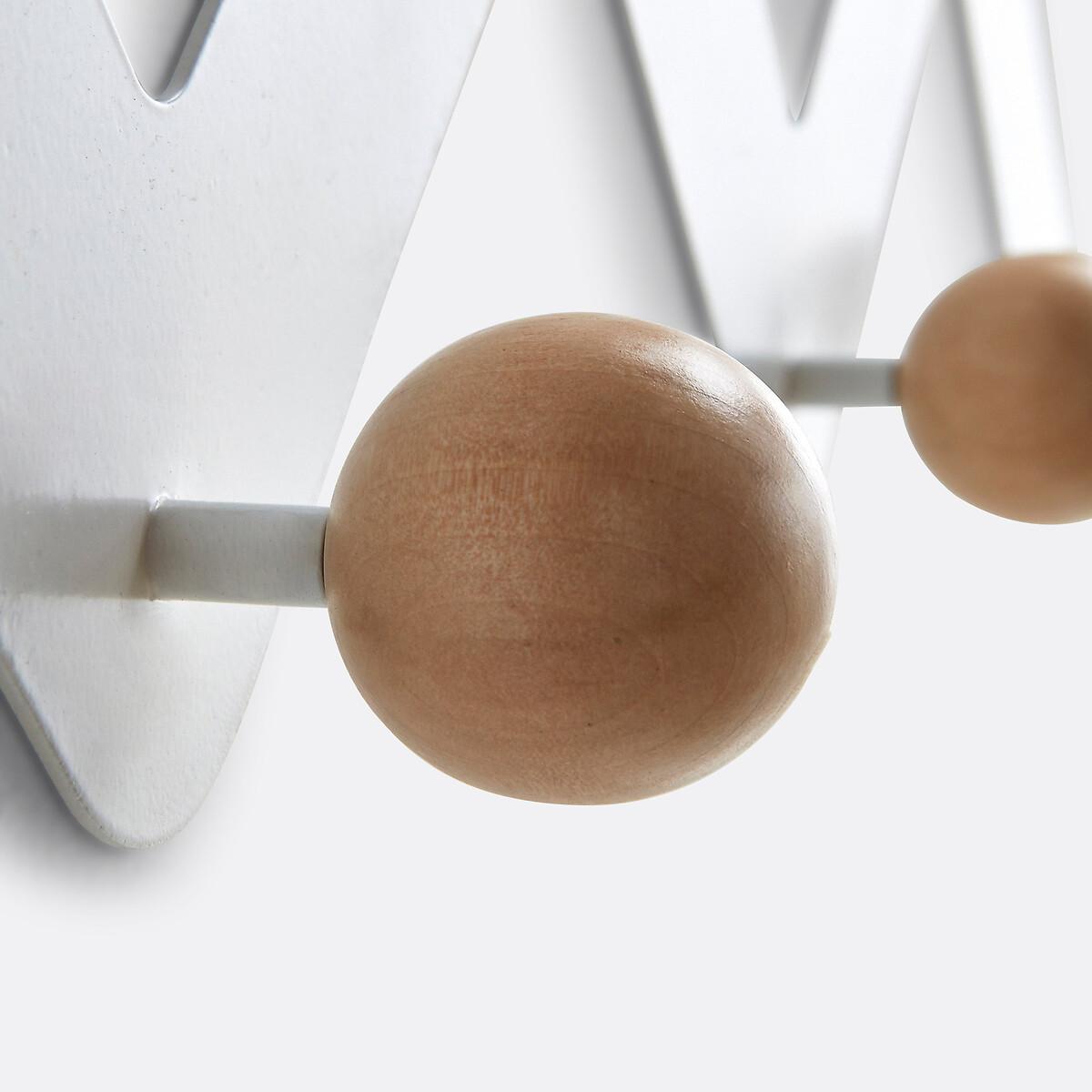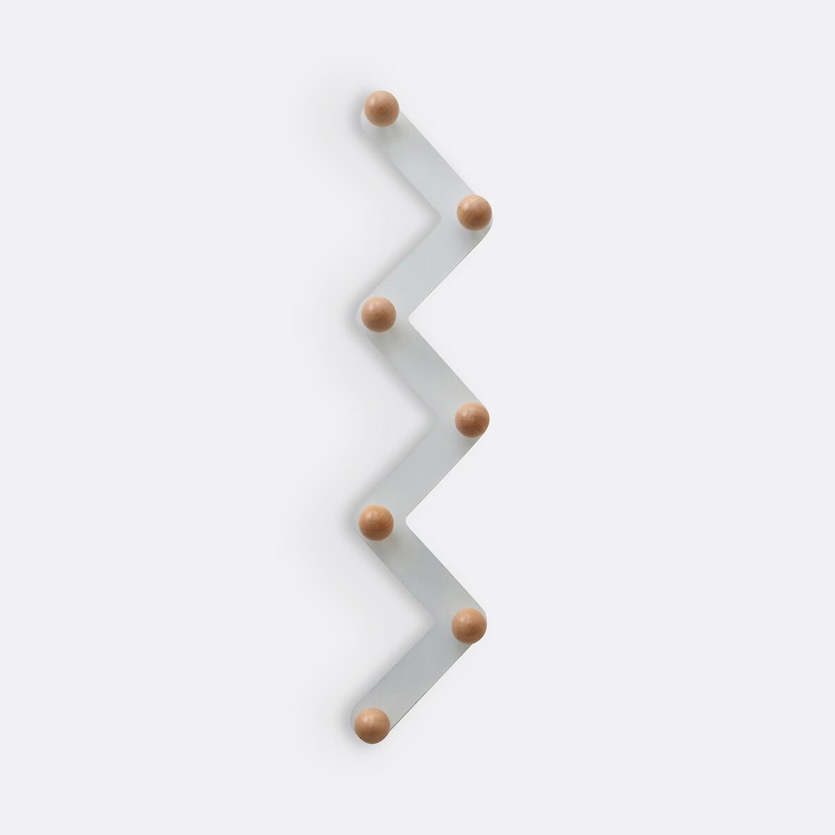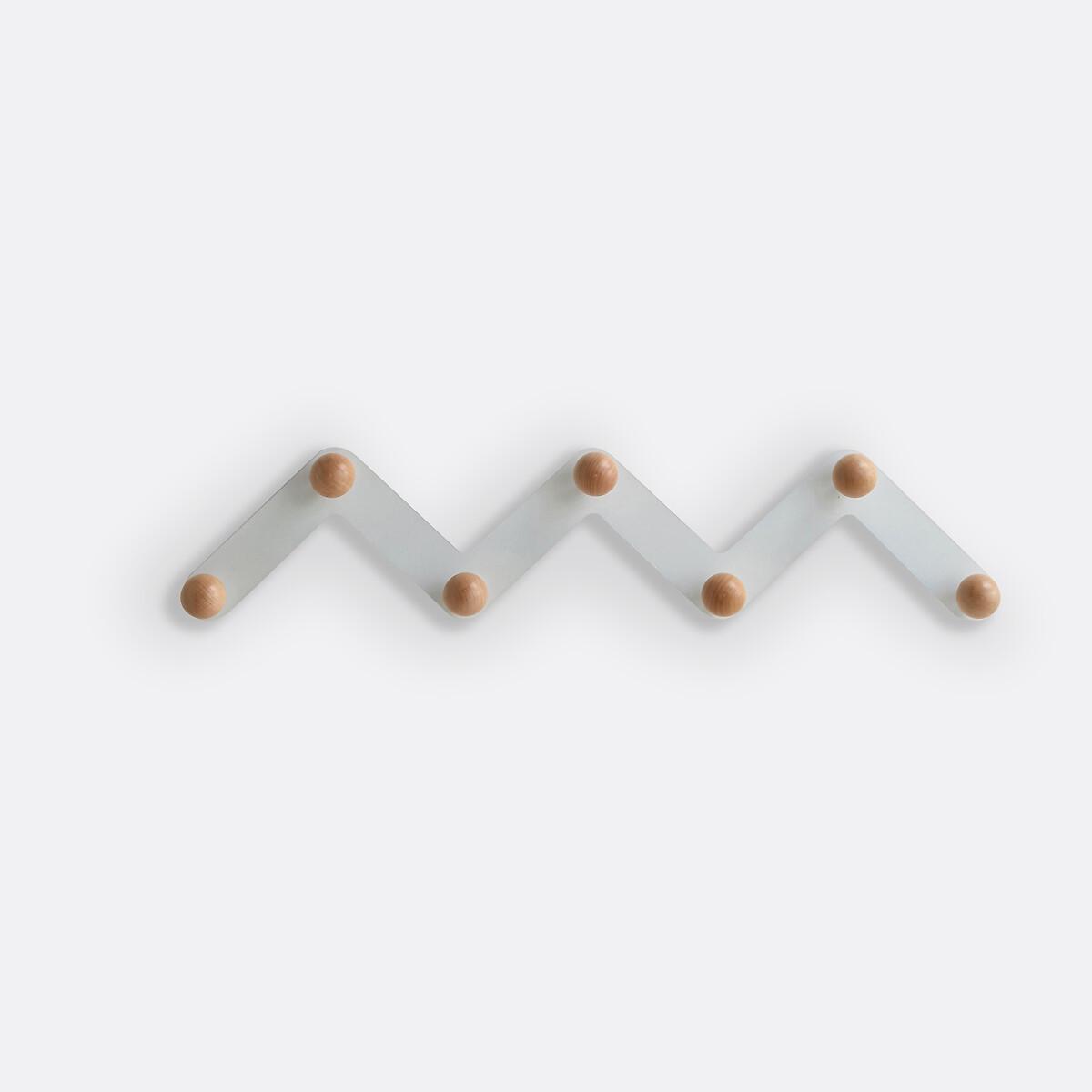 AGAMA metal zigzag wall rack for storage at different heights. It has 7 round wooden (birch) pegs on a black or white metal structure. Product Details • Requires fitting (fixings not supplied).Dimensions • Diameter: 5cm/2" • Width: 89.7cm • Height: 19cm • Depth: 7.5cm/3" • WOOD FROM SUSTAINABLY MANAGED FORESTS. FSC® certified wood comes from forests that are environmentally, socially and economically well managed.