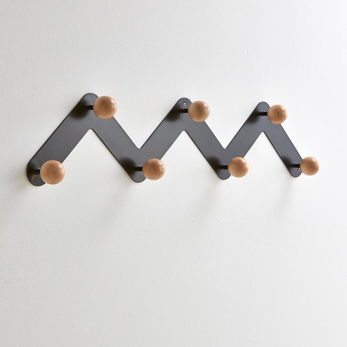 AGAMA metal zigzag wall rack for storage at different heights. Il est doté de 7 patères de forme ronde en bois (bouleau) sur une structure métal noir ou blanc.