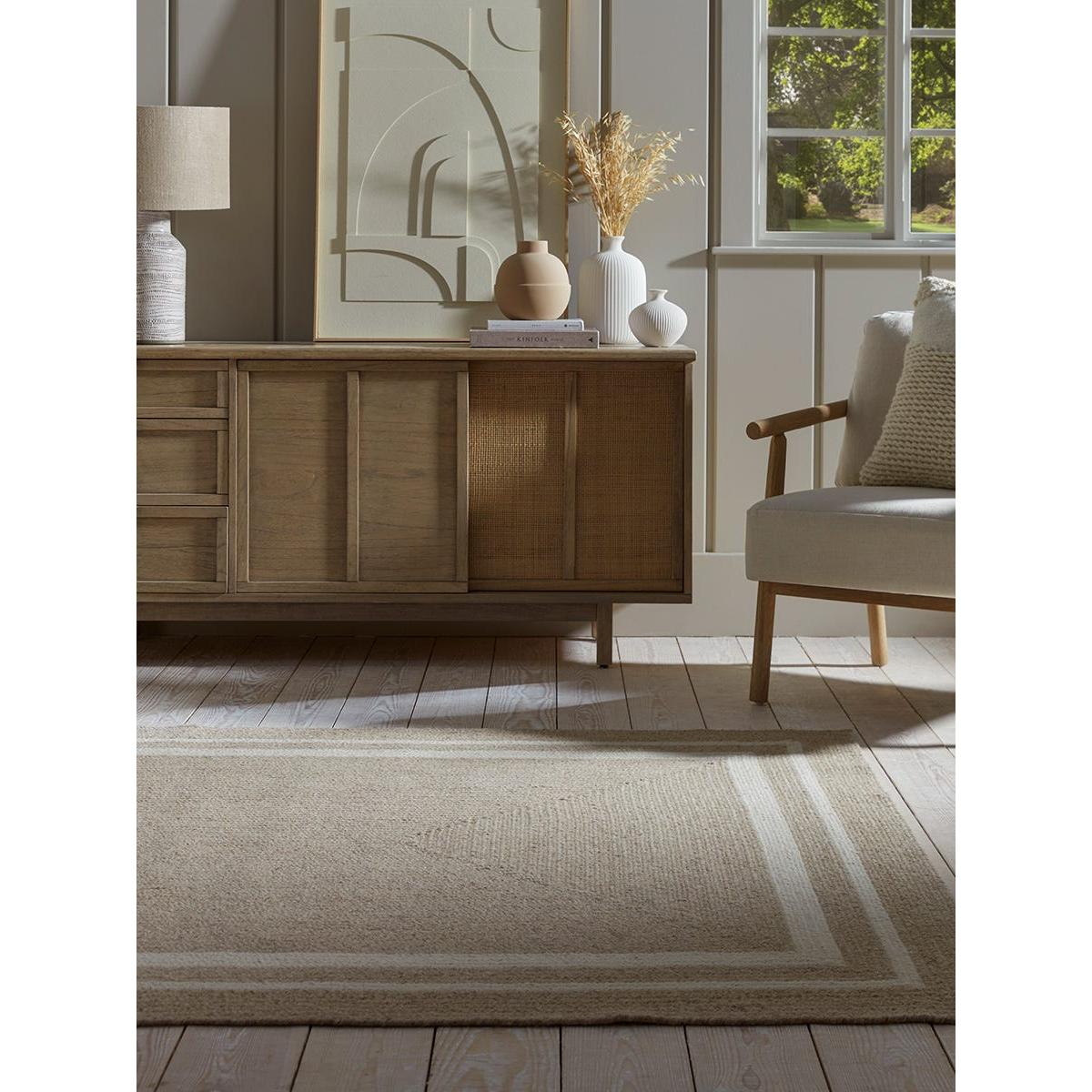 I love the natural and off-white border rug for its versatility and calming palette, which makes it a great grounding piece in both contemporary and neutral-toned interiors. It works particularly well in living rooms and bedrooms where a understated, yet textured element is desired. To style it effectively, I recommend pairing it with wooden or neutral-toned furniture to enhance its organic feel, and adding layered textiles like cushions or throws for added comfort and visual interest. Its understated design allows it to blend seamlessly into various schemes, while its durable weave makes it practical for high-traffic areas.