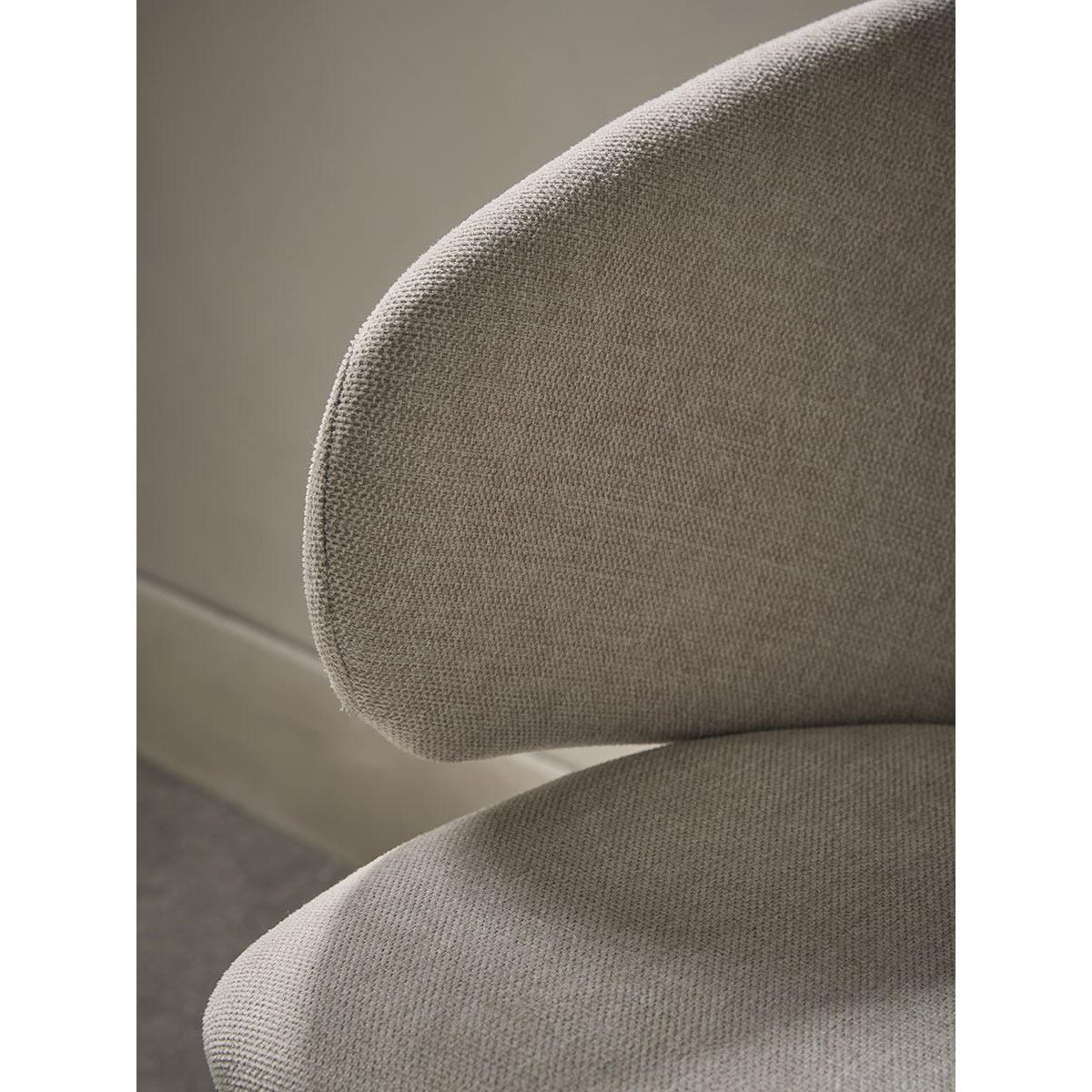 The Agnes Dining Chair boasts a unique design, with its fabric-covered seat and distinctive curved backrest, set upon a sturdy wooden frame.  This chair is an ideal choice for those seeking to create a contemporary or Scandi-inspired aesthetic within their home.  The soft grey upholstery offers a versatile neutral tone, effortlessly complementing any existing colour scheme.