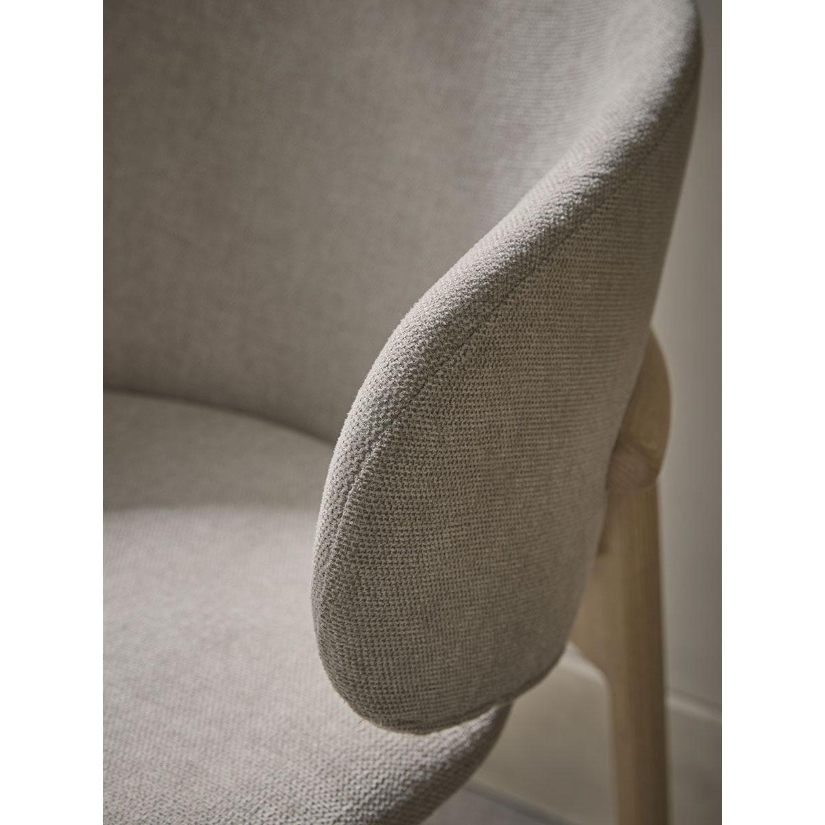 I love this chair’s understated, contemporary silhouette which makes it versatile for a range of interiors. Its neutral upholstery and light wood legs enable it to work well in both minimalist schemes and cosy, Scandinavian-inspired spaces. It’s particularly great as an accent piece in a living room or at the end of a bedroom bed, creating a relaxed yet stylish vibe. For practical styling, consider pairing it with textured cushions or placing a small side table nearby to make it a functional reading nook. Its soft, curved form adds a touch of comfort and warmth without overpowering the space, making it a smart choice for those looking to introduce a subtle touch of elegance.