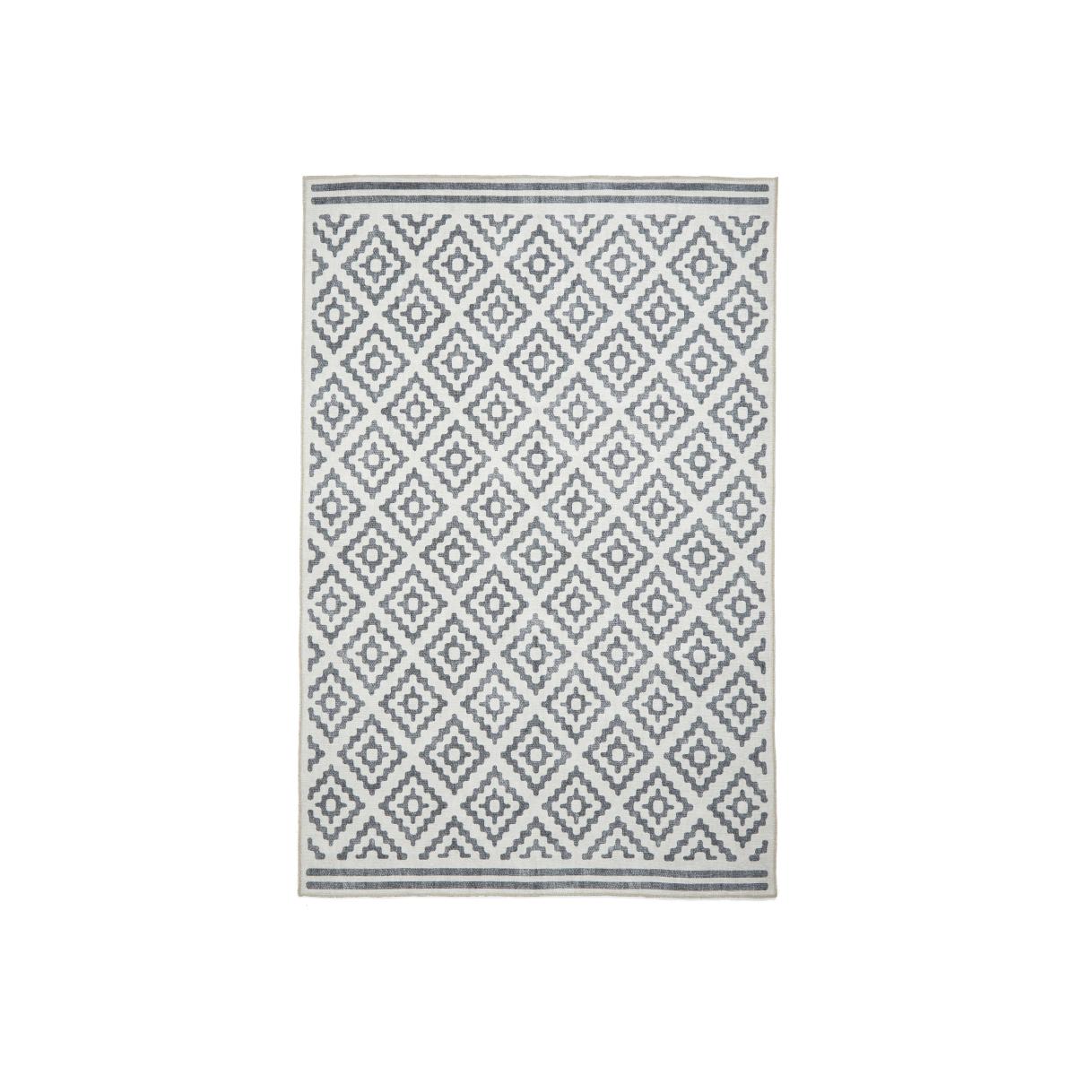 Kids or pets? Here’s your new rug. Machine washable, it has a durable flatweave finish and a non-slip backing so it stays exactly where you want it. In a choice of colours and sizes. Why you'll love it Beautiful washable rug with an elegant geometric pattern. Short ends are finished with a striped border. Wide choice of colourways and sizes. So easy to keep clean – it’s machine washable. Durable flatweave finish with a soft, shallow pile. Non-slip backing keeps it firmly in place. Environmentally friendly – it’s made with recycled materials. Striking digitally printed design. Ideal for homes with children and pets. Also available as a runner. This rug is part of the Furniture Village home accessories collection. What you need to know Polyester, recycled materials. For indoor use only. Machine washable. Item code: AGNERUG5GRY-001
