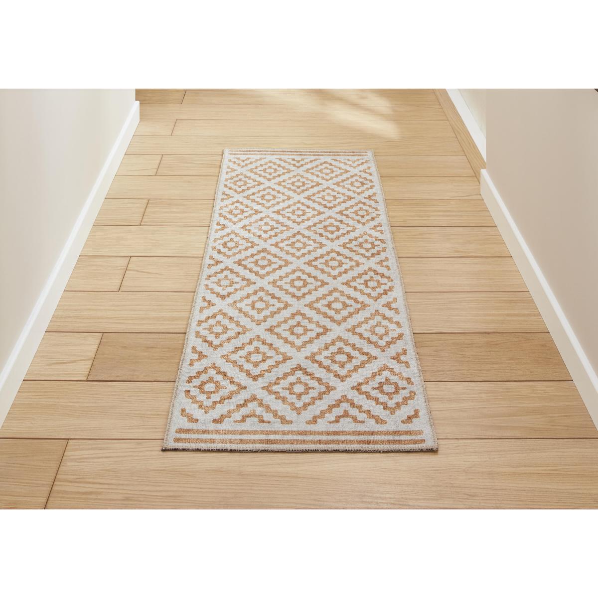 Make your home beautiful – and your life easy – with this machine-washable runner rug. The non-slip backing means it stays firmly in place, and the flatweave finish is very durable. Why you'll love it Beautiful washable runner with an elegant geometric pattern. Short ends are finished with a striped border. Wide choice of colourways and sizes. So easy to keep clean – it’s machine washable. Durable flatweave finish with a soft, shallow pile. Non-slip backing keeps it firmly in place. Environmentally friendly – it’s made with recycled materials. Striking digitally printed design. Ideal for homes with children and pets. This runner rug is part of the Furniture Village home accessories collection. What you need to know Polyester, recycled materials. For indoor use only. Machine washable. Item code: AGNER-N2GRY-001
