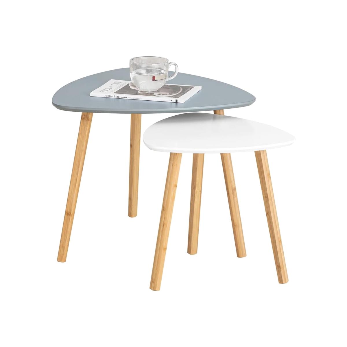 I’m a big fan of this little grey nest of tables for its clean lines and light bamboo legs - it slots straight into Scandi, modern-minimal or coastal-inspired schemes. The two sizes mean you can tuck the smaller table away to save floor space or pull it out for drinks when you’ve guests over. To style, try a small plant or a stack of art books on the larger top and a decorative candle on the smaller one; grouping them at slightly different angles beside a sofa gives a relaxed, layered look without overwhelming a room.