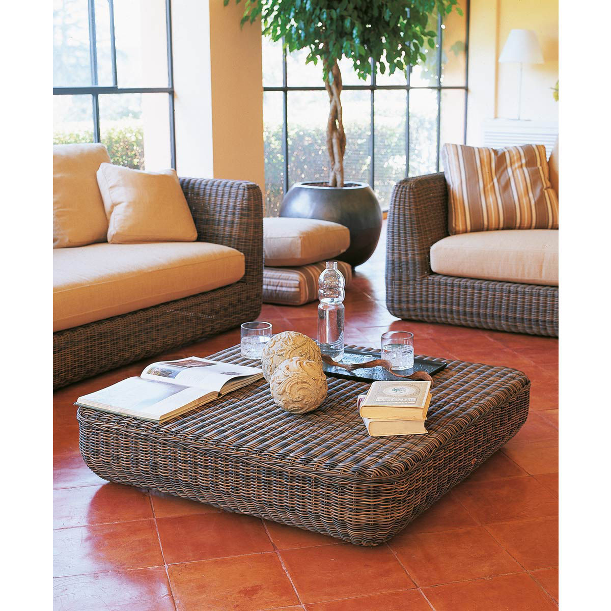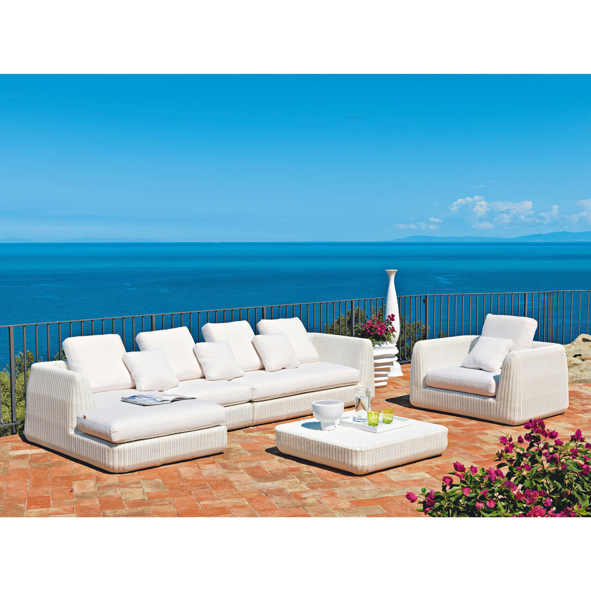Combining comfort and contemporary lines, the Agorà collection is made of hand-braided synthetic fibre using refined and sophisticated traditional techniques. Waprolace® is a synthetic polyethylene fibre (100% recyclable) which resists chlorine and chemical substances contained in sun creams. Durable and weather-resistant, this synthetic fibre perfectly reproduces the warm, authentic look typical of natural fibre braiding. The soft seat cushion (removable cover) is covered with quality Tempotest® fabric, woven from mass-dyed acrylic fibres. This fabric is perfectly resistant to water and UV. The extreme comfort of the Agora collection is provided by the generous depth of its seat. The outdoor furniture from Italian brand Unopiù stands out for its careful, considered design, refined finishes and high manufacturing quality. The top-quality materials are worked by mixing skilled craftsmanship and cutting-edge tools. Unopiù represents an Italian lifestyle all over the world in which well-being, design and quality blend together, allowing a unique experience of living outdoors all year round. Thanks to the most advanced technologies, rigorous selection of raw materials and artisanal know-how, Unopiù products can withstand the most extreme weather and climatic conditions.