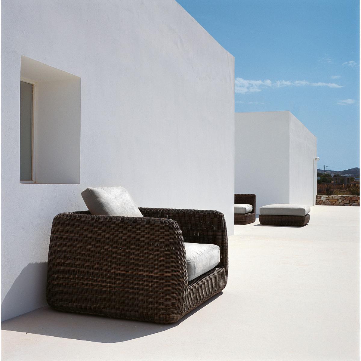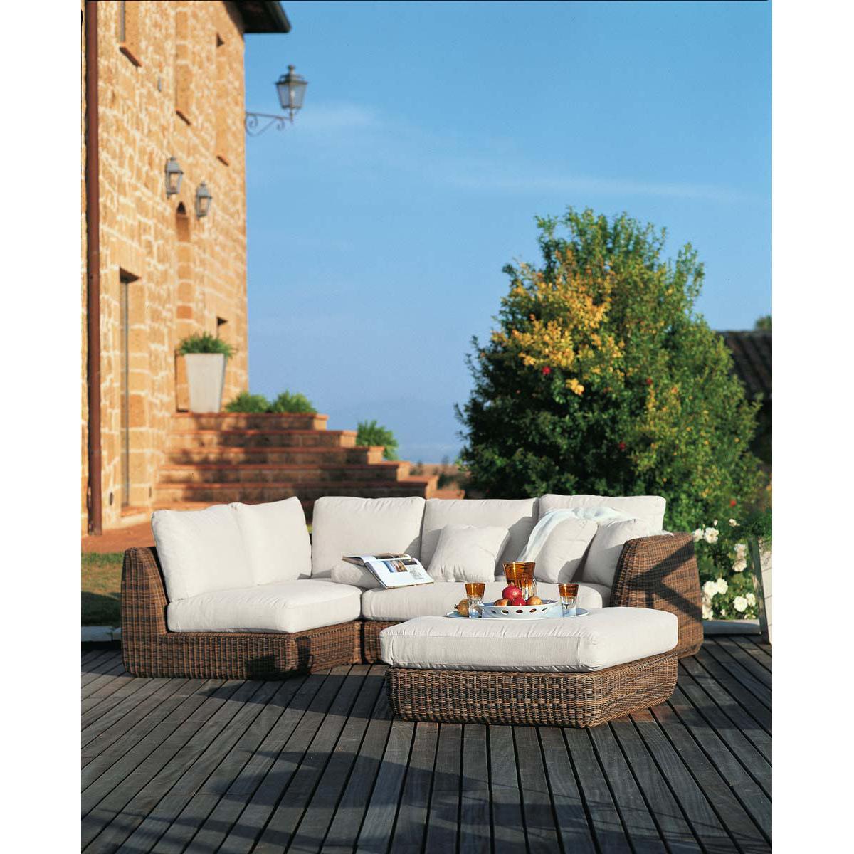 Combining comfort and contemporary lines, the Agorà collection is made of hand-braided synthetic fibre using refined and sophisticated traditional techniques. Waprolace® is a synthetic polyethylene fibre (100% recyclable) which resists chlorine and chemical substances contained in sun creams. Durable and weather-resistant, this synthetic fibre perfectly reproduces the warm, authentic look typical of natural fibre braiding. Highly modular, the Agorà collection includes several modules to compose a tailor-made outdoor living room. You can use the modules separately or assemble them to create your own layout, depending on your requirements and the space available. Anything is possible: a chaise longue to have a nap on, a corner sofa, a full XXL living room to welcome any number of guests. The outdoor furniture from Italian brand Unopiù stands out for its careful, considered design, refined finishes and high manufacturing quality. The top-quality materials are worked by mixing skilled craftsmanship and cutting-edge tools. Unopiù represents an Italian lifestyle all over the world in which well-being, design and quality blend together, allowing a unique experience of living outdoors all year round. Thanks to the most advanced technologies, rigorous selection of raw materials and artisanal know-how, Unopiù products can withstand the most extreme weather and climatic conditions.