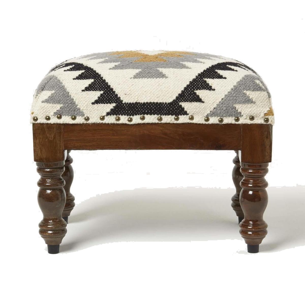 Agra Handwoven Kilim Footstool - Yellow, Gold, Grey, Black, White / 30cm