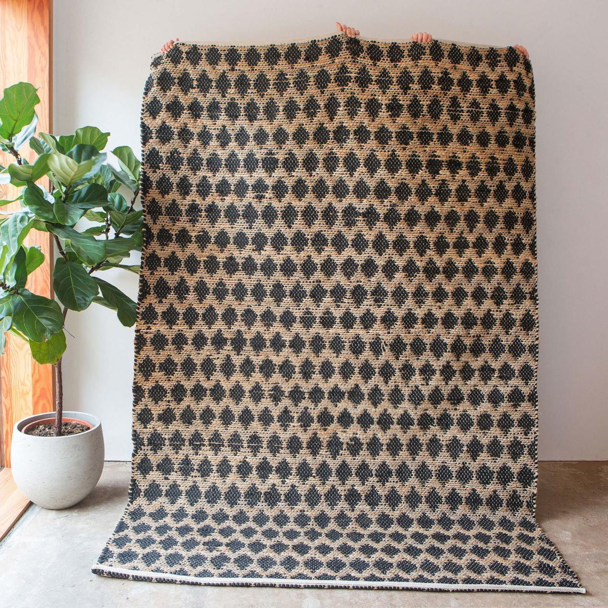 Hand-woven from a blend of cotton and hemp, a highly sustainable, low-impact fibre, our Agra rug is eco-friendly, stylish and easy to maintain. Skilfully crafted in India by talented artisans, each rug will be truly unique with a woven texture and an organically dyed black diamond design. Approx. L240 x W170cm. 50% hemp, 50% cotton. Vacuum regularly with care to keep clean. Remove spills immediately by blotting with a clean dry cloth. We recommend trimming off any loose threads with scissors. Professional cleaning recommended. Handwoven. Due to the handmade nature of this product the size, colour and pattern may vary.