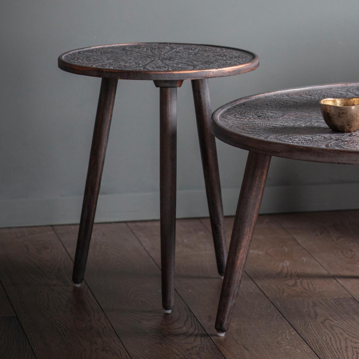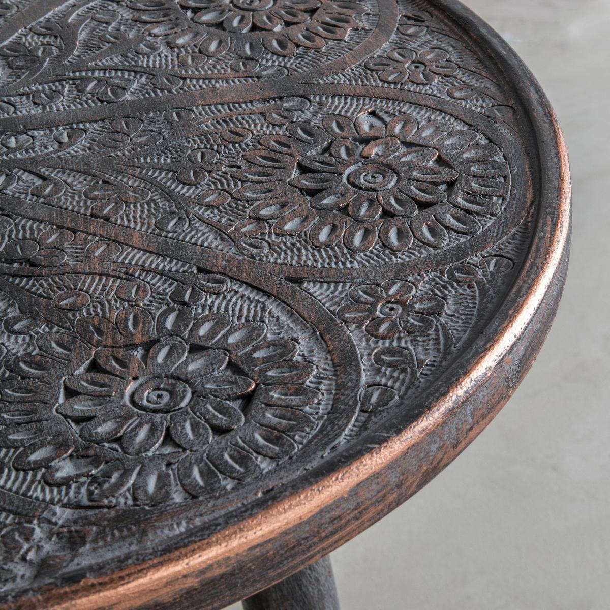 Agra Patterned Wooden Side Table Grey Copper Finish - Caspian House
