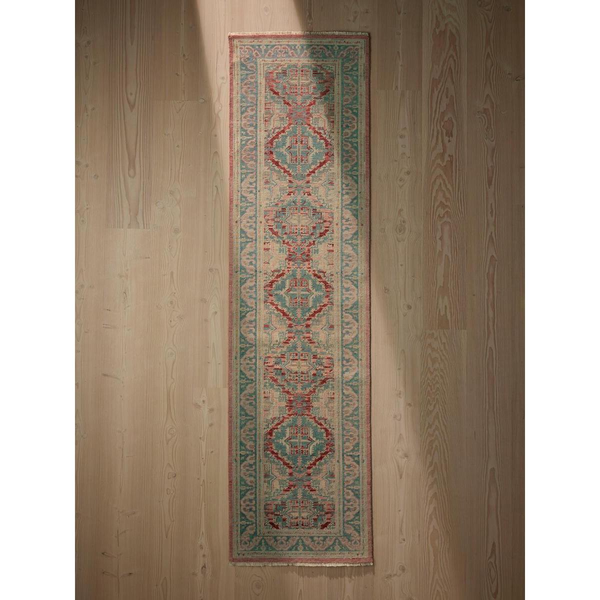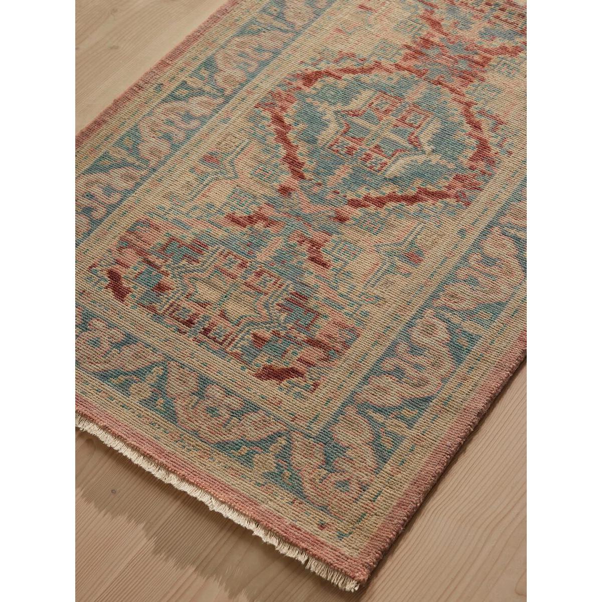 Tones of pale pink and rust give this traditional hand-knotted rug a warm feel, mirroring the styles found in the bedrooms at Babington House. Woven in India by skilled craftsmen, the vintage-inspired pattern brings colour and character to any room. This rug can also be seen in the entrance of Soho House Barcelona. Vintage-inspired rug Hand-knotted in India Warm pink and rust tones Seen in the entrance of Soho House Barcelona Available in a range of sizes Inspired by Babington House