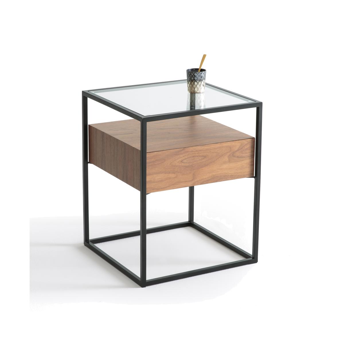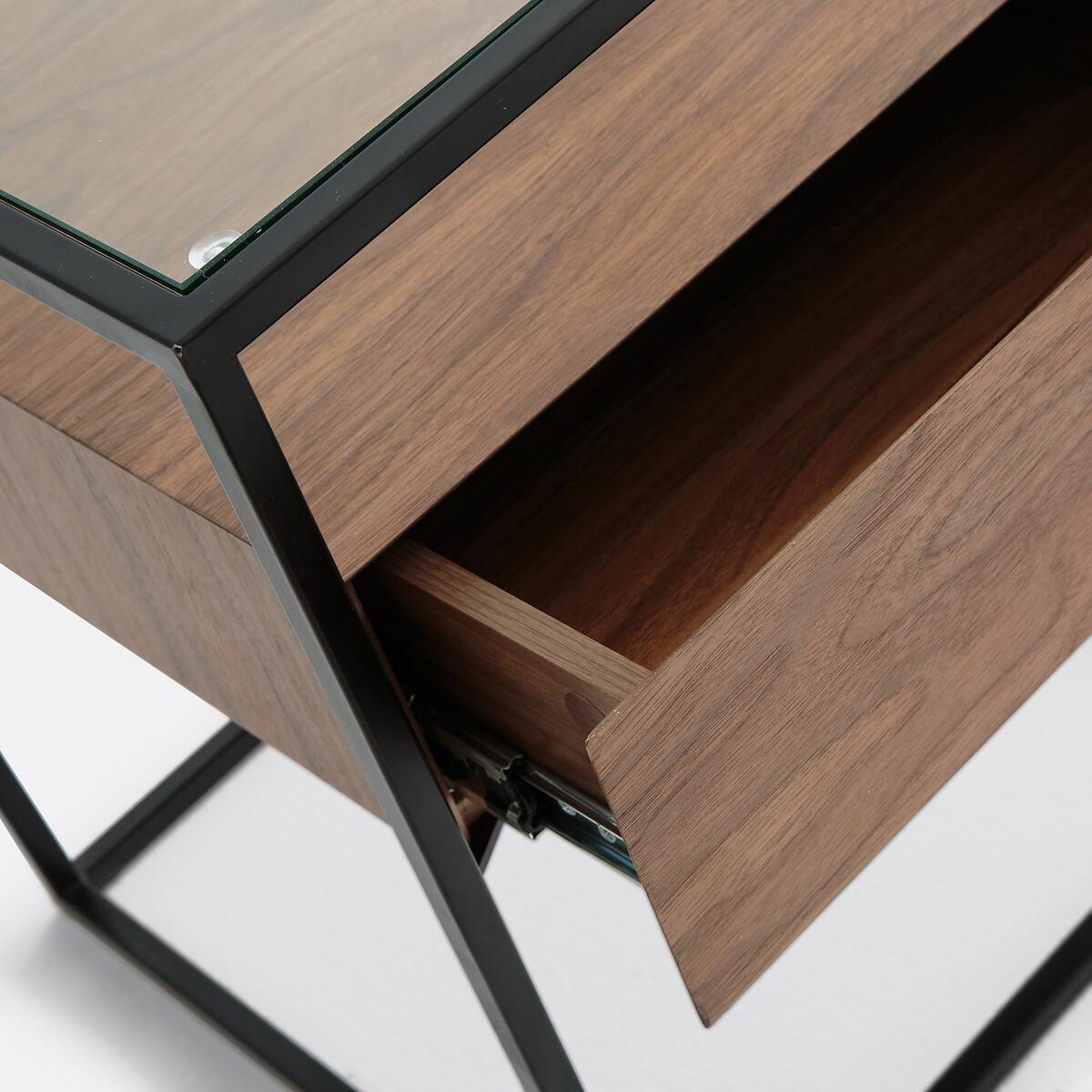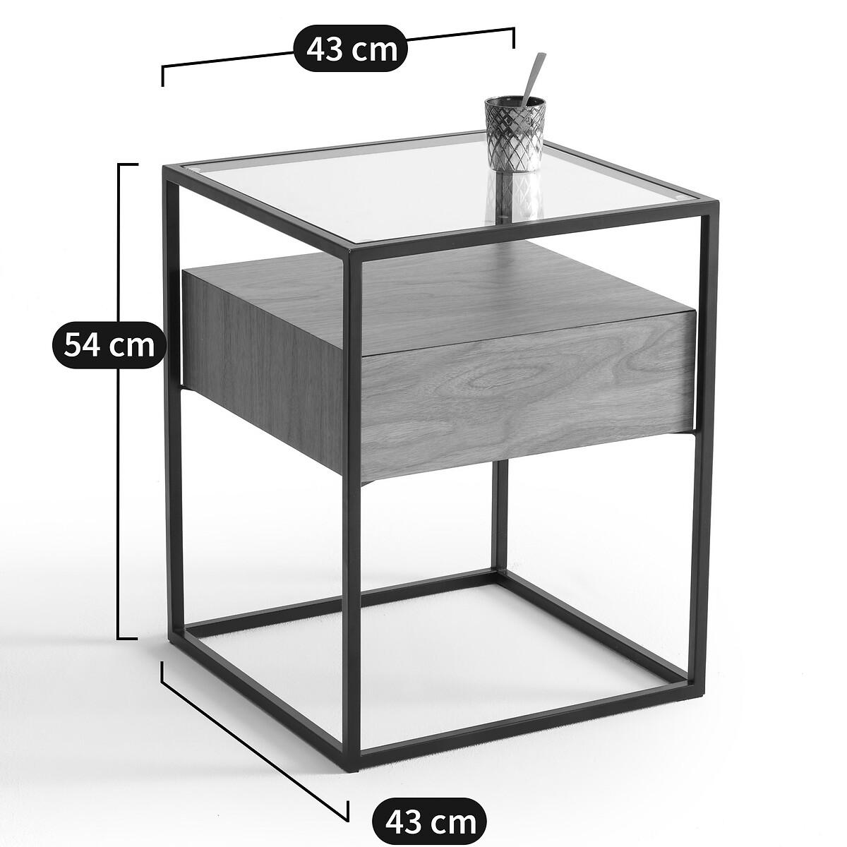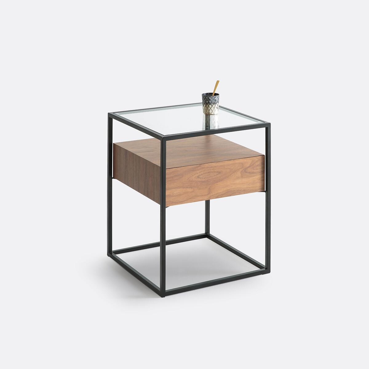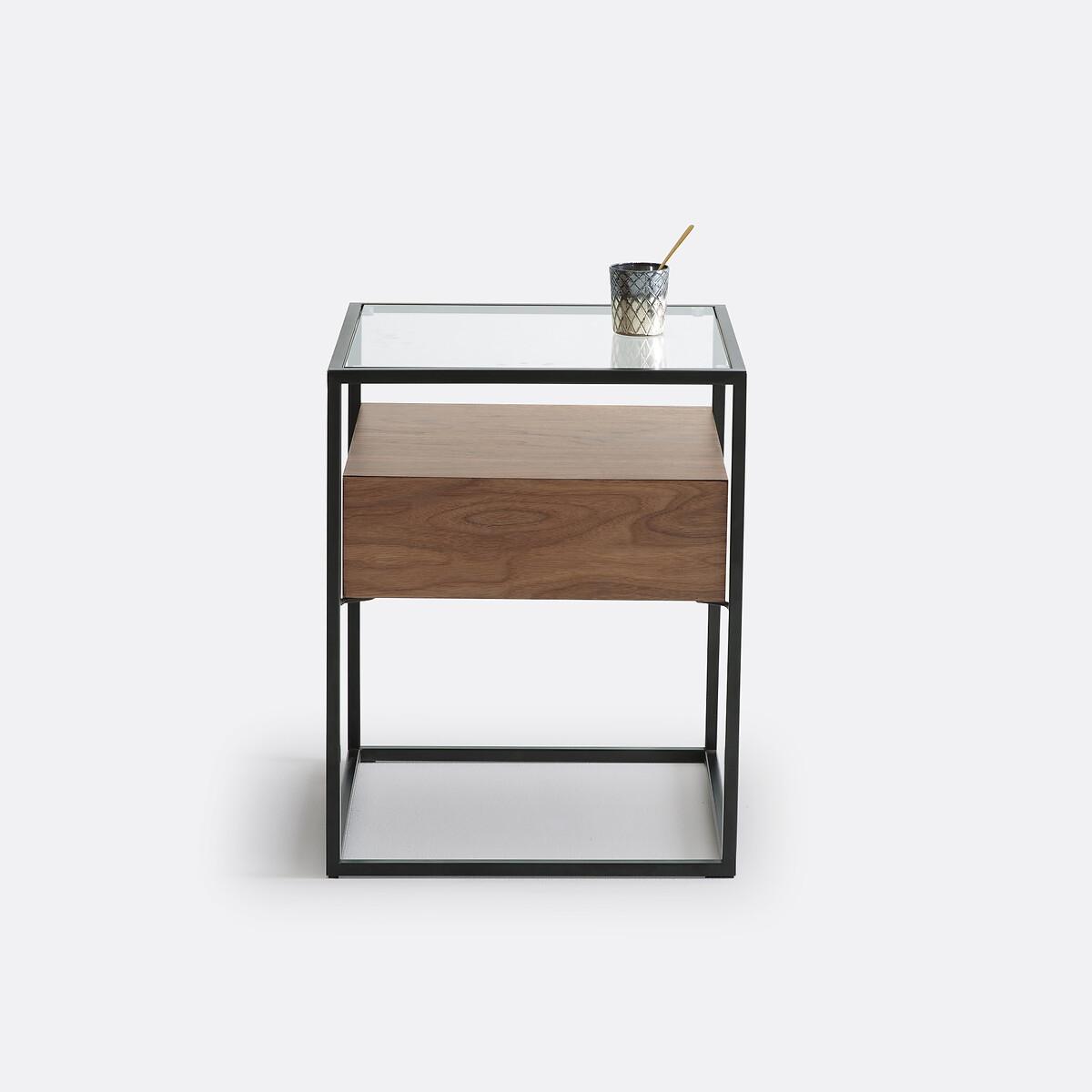 Agura 1-drawer bedside cabinet. A very contemporary, chic look. We love the great mix of metal, wood and glass, plus the quality finish.