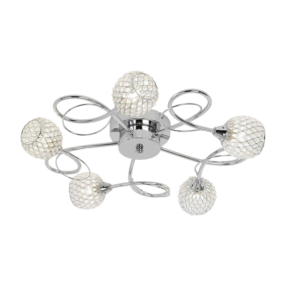 A 5 light flush ceiling fitting which comes finished in polished chrome, with mesh and clear bead shades suitable for use with LED lamps and fully dimmable. Also available in a 3 light version
