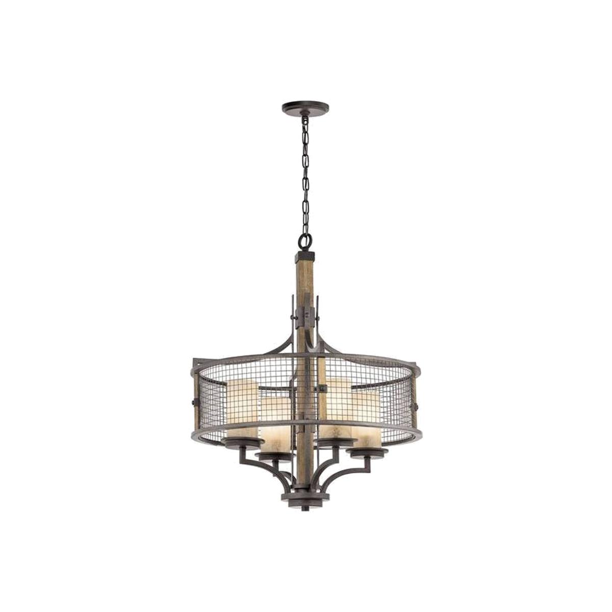 The dressed up rustic styling of this 4 light chandelier opens new possibilities sure to enhance your decor. Open Anvil iron mesh surrounding and protecting Mica shades which in turn cast satisfying and comforting illuminations in your home. Also available in this range 1lt Wall Light, Mini Pedestal, and 3lt Duo-Mount Chandelier.