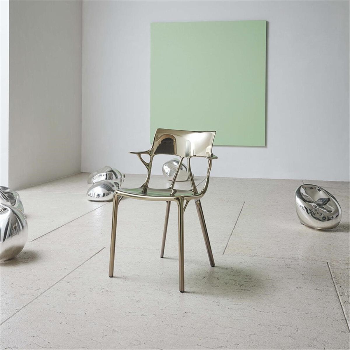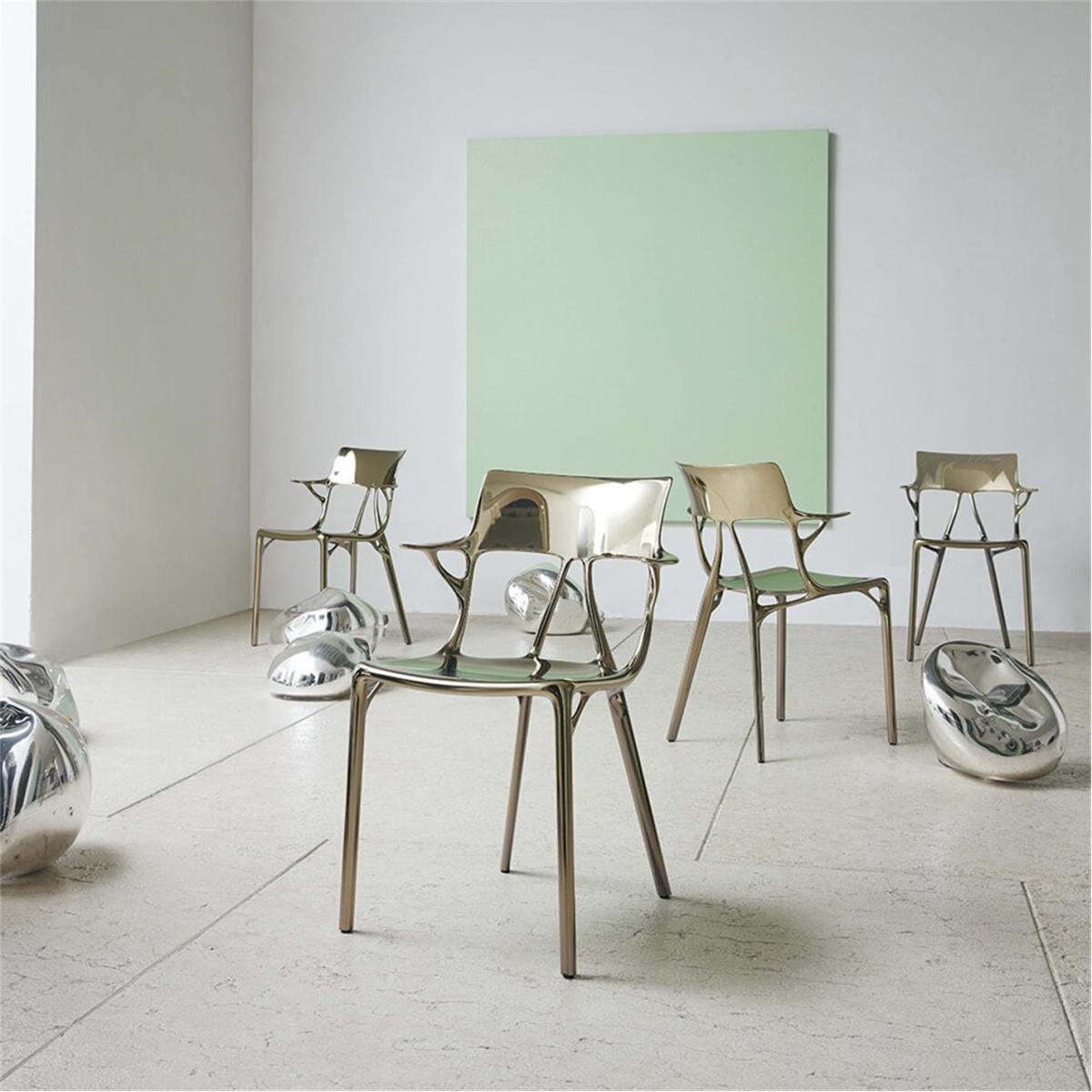 This is the first chair conceived by artificial intelligence. Born in response to input received from the famed designer, Philippe Starck, and the knowhow of Kartell, creative thinking and artificial intelligence have merged to develop a chair that's comfortable and respects the quality and aesthetic standards of the design. Made from 100% recycled thermoplastic from production scraps, it is an injection moulded product which saves on cost and waste, and the material used restores life to an otherwise unused industrial waste product.