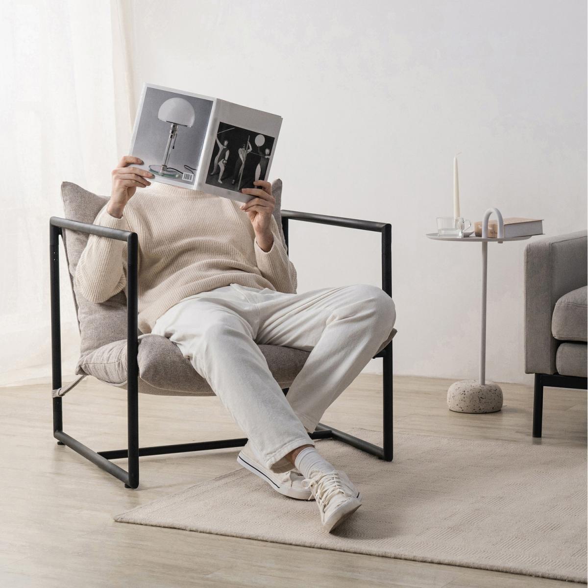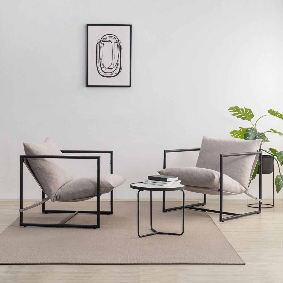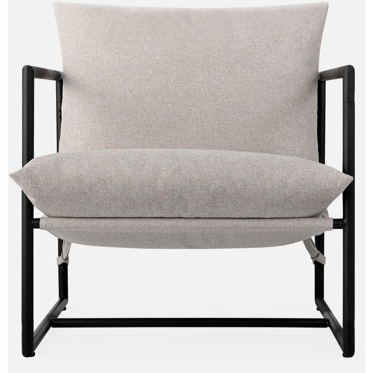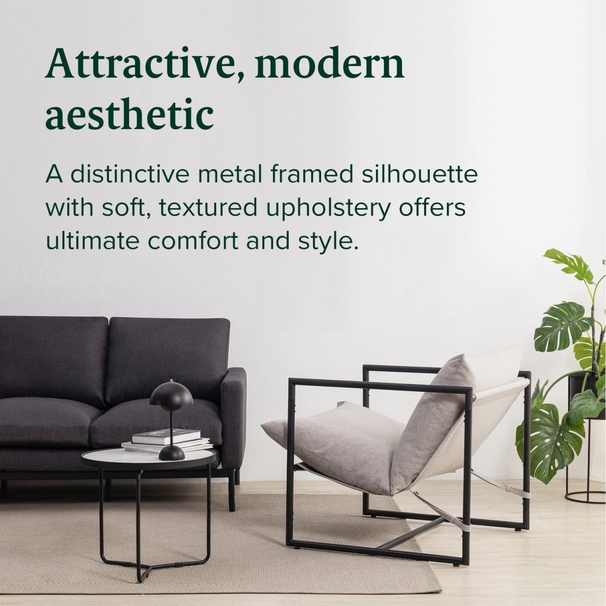 For lovers of modern style and enveloping comfort, the Aidan Sling Accent Chair is as impressive as they come. Perfectly suited for your reading corner, living room, or office, this boldly defined accent piece features an ideal mixture of metal and upholstery. Its squared-off silhouette creates a sharp, polished look and also a reliable structure you can depend on for serious lounging. Sink into its softly textured cushions, filled with shredded foam that will conform to your shape however you like to sit. Designed with an extra roomy seat, even taller sitters can enjoy its supportive feel. The Aidan chair is compactly packed into a single, easy-to-maneuver box that includes everything you'll need to assemble it in minutes. After seeing its striking look and settling right into this comfy seat, you might be wishing you had two.