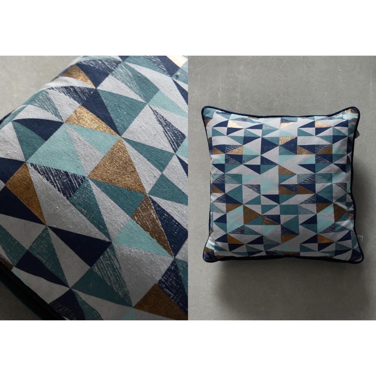The brand-new Aiden cushion is a thing of geometric loveliness. This soft cushion has a popping colourway in a beautiful pattern that you will never get bored of. Dark golden touches throughout elevate its geometry-inspired print, adding a sophisticated look to this eye-catching design. The Aiden is perfect for the contemporary home and ideal for those looking for small furnishings to cheer up a sofa, chair or bed.