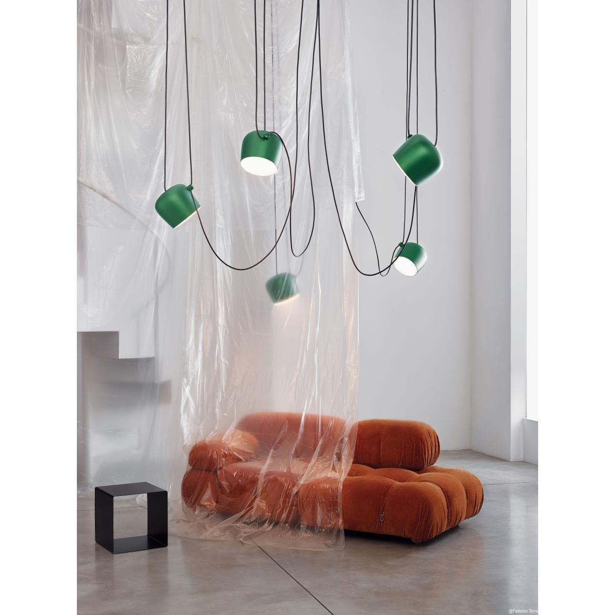 The Bouroullec brothers are continuing their floral exploration. Both stylish and fun, the AIM light pays homage to the power lead which becomes the key aesthetical part of the lamp. The cable appears to grow and develop like a creeper. This lamp hangs from the ceiling using the fixing hook, supplied. It has a long electrical cable (9 metres) which ends in the plug. It can be simply plugged in to a floor socket and therefore there is no need for complicated electricals in the ceiling. By sliding the cable, you can easily vary the height of the diffuser to meet all of your lighting needs. The duo of designers explains: "We have developed the proposition for a new type of lamp that fits naturally into space - like a plant - thanks to the long cable which freely facilitates the orientation and height of the light. ‘’By reducing this light to the very essence of what a pendant is - a cable and a light diffuser - the Bouroullecs bring life, poetically, to an unusual lamp with strong graphic impact. The AIM lamp is the industrial version of the “Lianes” lamps originally created for the Kreo gallery in Paris in 2010.
