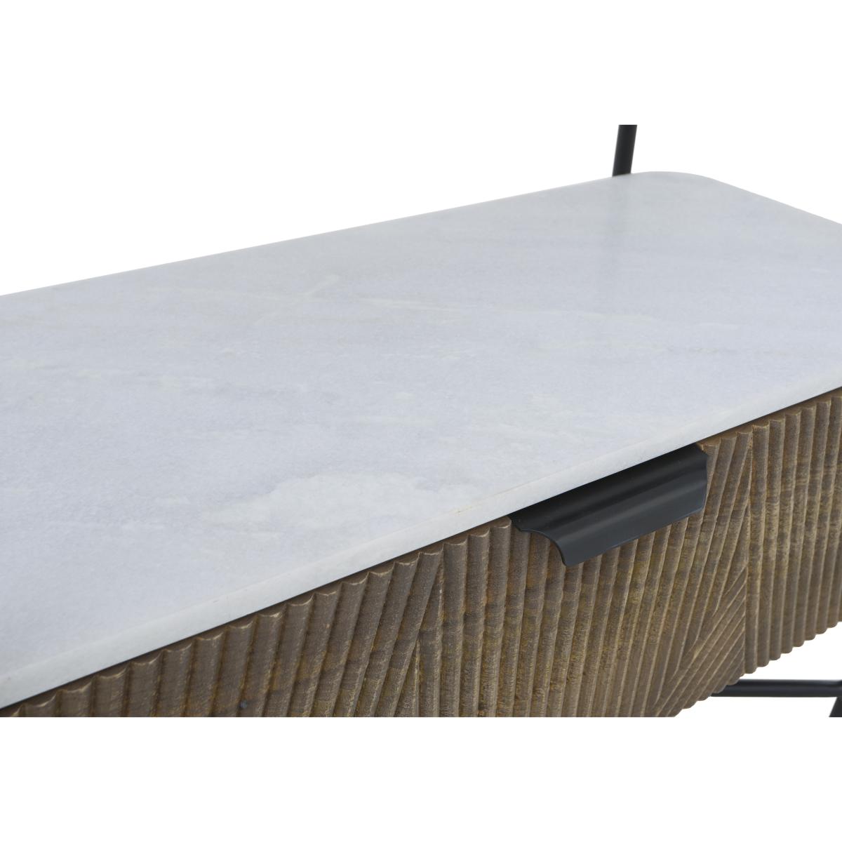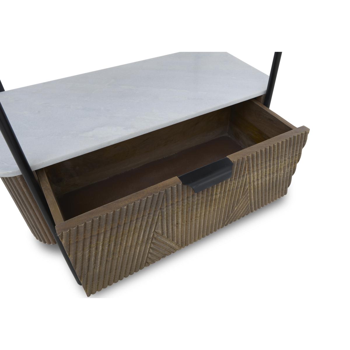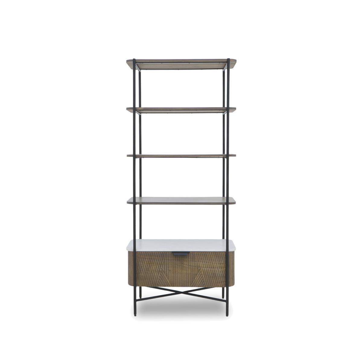 It's the combination of natural finishes – marble, wood and iron – that guarantees that every piece in our Aimar range is unique. And it's the way that each material is beautifully crafted that ensures every item is striking, distinctive and elegant. Showcasing white marble tops, fluted wood frames and table pedestal bases, and slender iron legs, this stunning collection includes dining tables, dining sets and sideboards as well as occasional tables and storage pieces for living rooms. Bring home a piece from the Aimar range and bring home one-of-a-kind style. This statement bookcase with a roomy drawer is the perfect piece for display and storage. Its white marble and fluted finish is simply stunning. Why you'll love it Made by nature, crafted by experts. Our Aimar range brings together beautiful and authentic finishes. This bookcase is finished with white marble. And because every piece of marble is unique, every Aimar bookcase is one of a kind. The fluted wood frame has a natural, organic feel. Marble-topped storage drawer and 3 shelves. A fashion-forward look that will stand the test of time. This bookcase is part of the Aimar range. What you need to know Marble top and drawer top, 3 wooden shelves and iron legs. Marble is hardwearing but not indestructible, so it’s important to care for it properly. Spillages need to be removed immediately. To clean, wipe gently with a damp cloth using warm water, then buff dry. We recommend that you use coasters and placemats to protect against heat and moisture. Do not use knives to cut food on a marble table top, use as a work top, place heavy weights on the table or use acidic or abrasive cleaners. You should never sit or stand on a marble surface. For more advice on caring for your marble furniture, see our Dining care guide. WARNING! Furniture can tip over unexpectedly and cause injury. This item must be fixed to a wall using the anti-tip kit provided. Be sure to use the correct wall fixings suitable for the walls in your home. Furniture Village is not able to fix anti-tip devices for you. Seek professional advice if you are unsure.