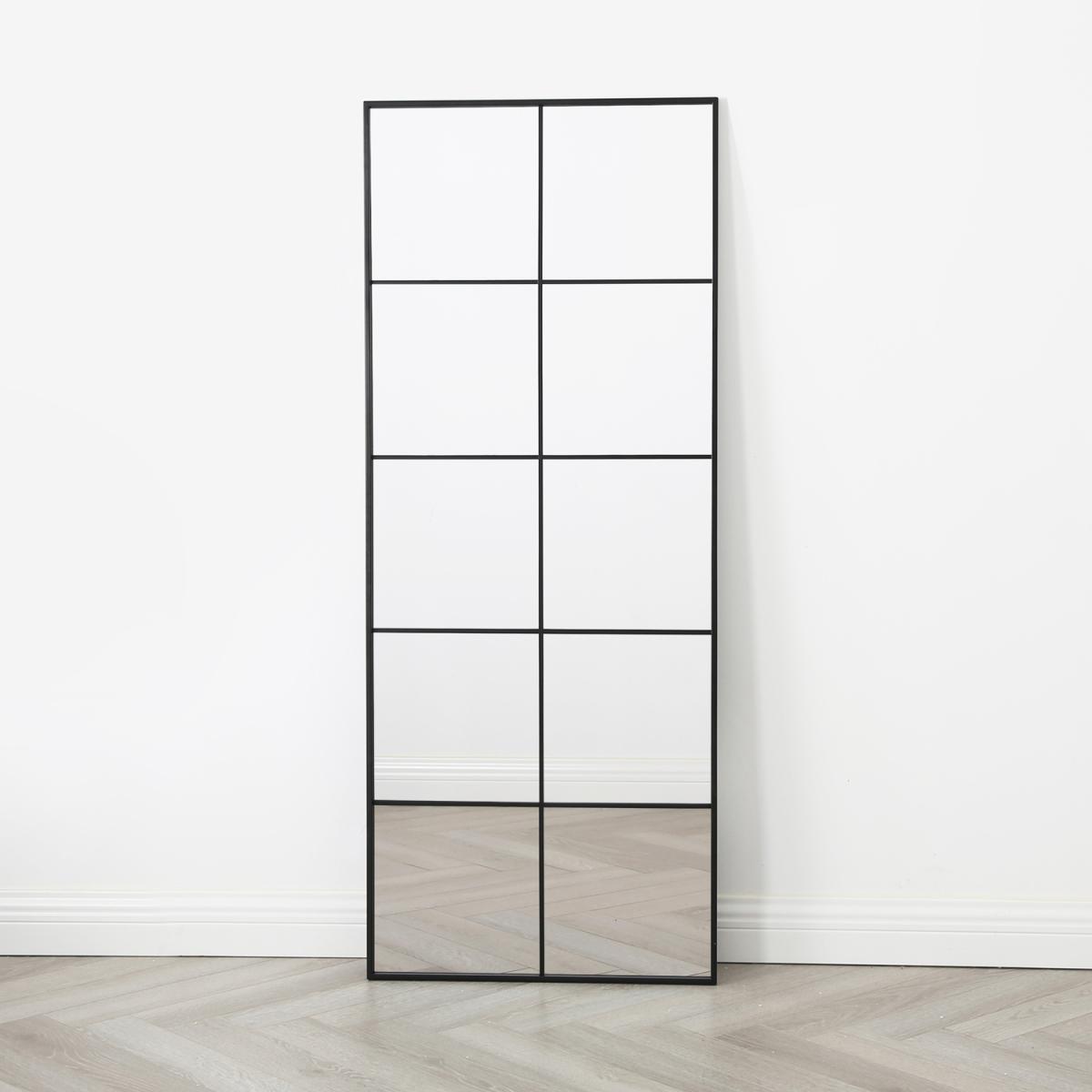 Introducing the Aion black framed window mirror, a stylish and useful addition to your living area. This rectangular mirror that hangs on the wall was made with accuracy and utility in mind. The black framed mirror's sturdy design ensures durability in addition to adding a touch of sophistication to your decor. This metal full length mirror, which has been expertly crafted, is perfect for a variety of uses. This Aion product is not only a living room mirror it also functions as a standing or wall mirror for outfit checks. It is tailored for both style and functionality. It blends in seamlessly with every space in your house thanks to its adaptable proportions and industrial mirror style. When you select Aion standing or wall mirror, you select a name that is closely associated with excellence and dependability. Enhance the look and practicality of your living space with the Aion black frame rectangular mirror, a statement of timeless style and reliable industrial mirror.
