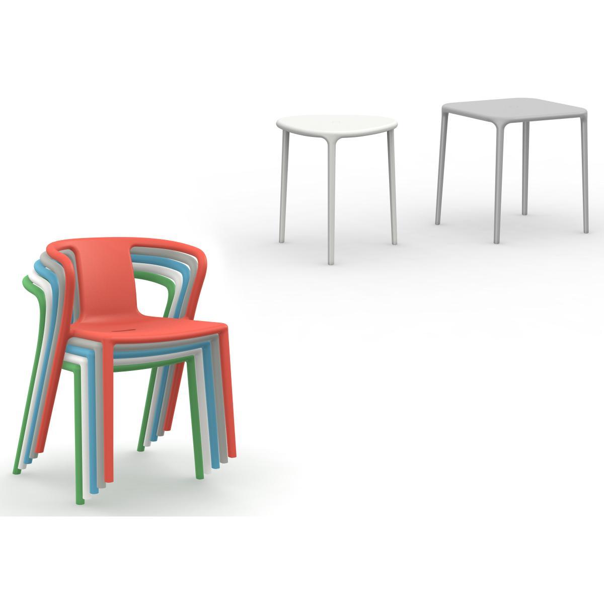 The AIR collection of Jasper Morrison enlarges itself with this armchair Air armchair, novelty of Milan 2006. It coordinates himself with the AIR CHAIR already existing. As his small '' sister'', he has all to seduce: candy or pastel colors, square form and round line, molded in an alone pad, easily stackable and to take thanks to a small foreseen handful in the sat. Indoor or outdoor, it gives to the tone of a cheerful and colored deco. Exist in orange, fuchsia, blue sky, green apple, pale green, beige and white.