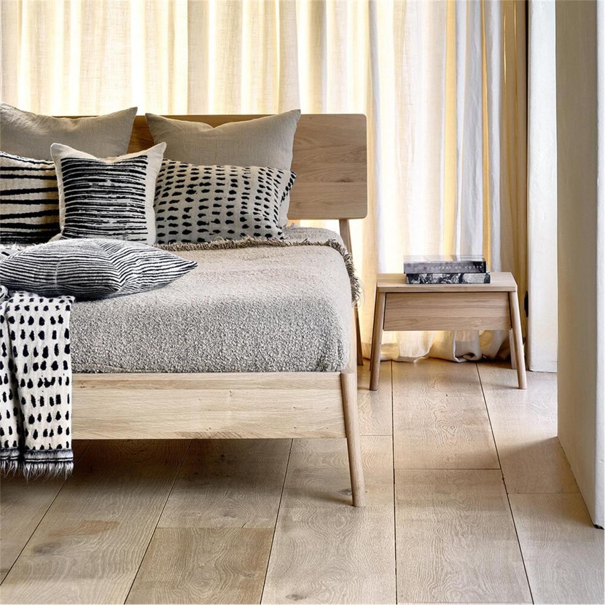 I’m a big fan of the Air bedside for its clean lines and warm oak tone - it slots effortlessly into Scandi, minimalist or Japandi schemes. The gently splayed legs lift the design, giving a light, airy feel that won’t swamp a smaller room. Styling-wise, keep the top uncluttered: a slim-profile lamp, a small ceramic pot for a sprig of greenery and one or two bedtime reads. Inside the drawer you can stow chargers or journals, so the surface remains calm. Pair with crisp white bedding, a textured rug and simple wall hooks for a cohesive, pared-back look.