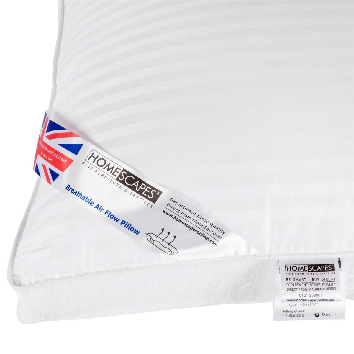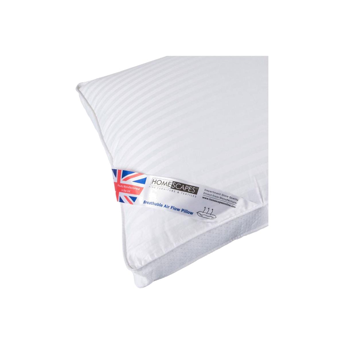 Beat the heat during the night with the Air Flow Super Microfibre Pillow from Homescapes. This pillow features an air-permeable, 3D mesh panel that enables air to move through the pillow to keep your skin at its optimum temperature. With a 100 cotton outer casing, this smart pillow draws away heat and moisture from your skin while the breathable gusset transfers warm air out of the pillow, so you wake feeling cool, dry and refreshed every morning. Especially designed for side sleepers, this extra-height pillow features a generous filling of our much-loved, bounce-back Super Microfibre to fully support your head, neck and shoulders to prevent back and neck pain. Our Super Microfibre was originally developed as a synthetic alternative to down and offers hypoallergenic, anti-dust mite properties as well as cloud-like softness so you can get a quality, well-supported sleep time after time. Machine washable at 40 C. Tumble dry on low heat. Ensure that the pillow is completely dry before use. Measures approximately 48 x 74 cm (19 x 29), suitable for use with UK standard size pillowcases. Standard fill option also available (sold separately).