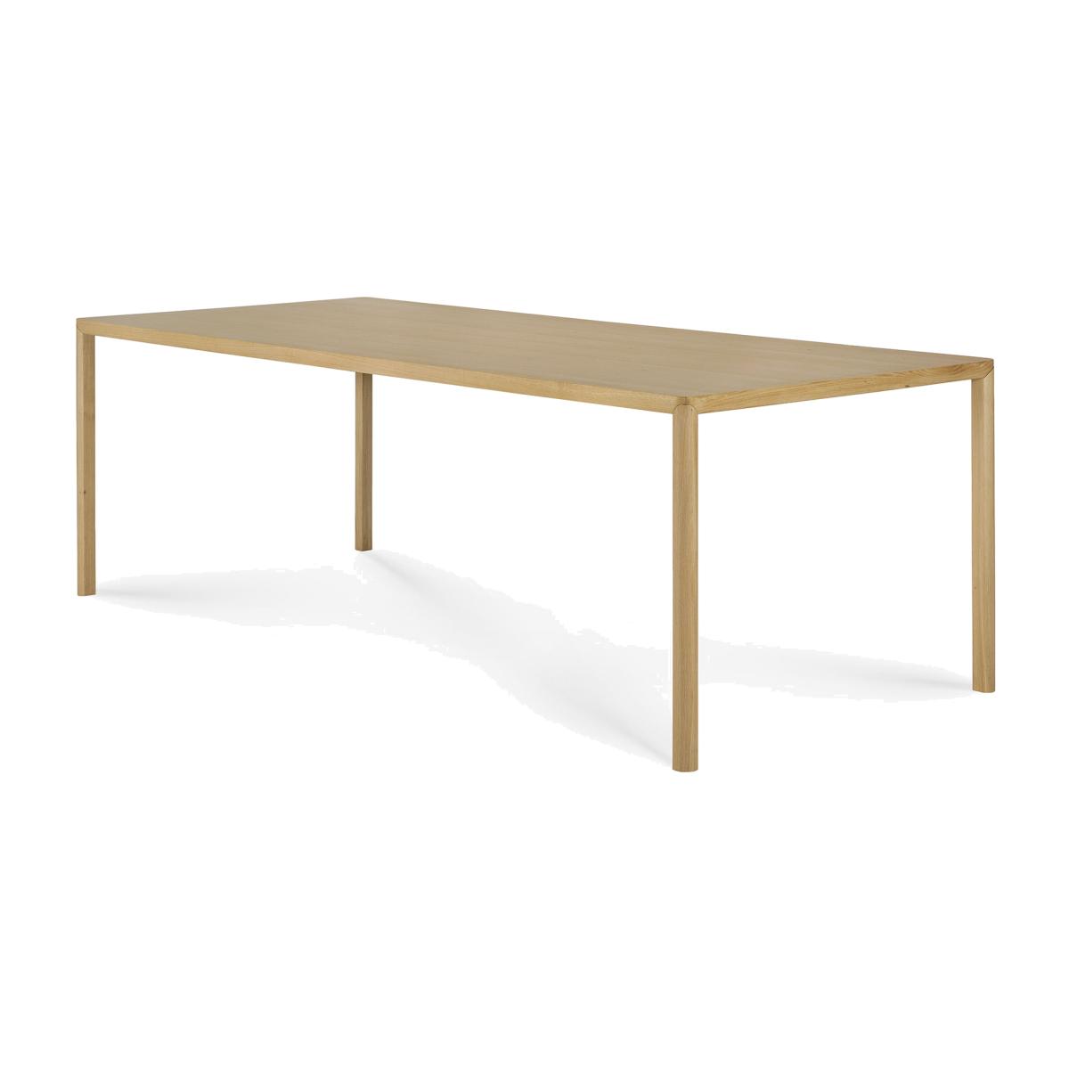 The Air oak table has a warm and authentic style. Its clear, refined design makes it a modern, timeless piece capable of blending into any decor style without ever becoming boring. The finishes are perfect and extremely neat. Based on four round legs, the tabletop appears to float. The Air table is a sophisticated yet solid piece with a simple, sleek and minimalistic design. It adds its natural charm to your interior. For 25 years, Belgian brand Ethnicraft has paid tribute to the beauty and authenticity of solid wood. Timeless, extremely robust and durable, these are quality pieces of furniture that age wonderfully and are passed down from generation to generation. Hand-crafted, Ethnicraft furniture is the result of exceptional expertise. Behind the apparent simplicity of the design hides a constant search for innovation. Integrating advanced techniques into the creative process, each new design is refined down to the slightest detail. This minimalistic desk offers a stunning graphic and modern look. Maintenance: this wooden product is treated with a protective varnish. This finish gives the product its natural colour and provides effective protection from staining. Despite this treatment, we advise that you immediately clean up any liquid spills or splashes. For cleaning, or if you spill something onto the tabletop, use a damp cloth and natural soap. Dry using a soft, clean cloth. We advise occasionally using an uncoloured liquid wax cleaning product. Recommended brand: Osmo Liquid Wax Cleaner 3029 (sold on our website). The liquid wax product cleans and restores waxed or oiled wooden surfaces. It's perfect for occasional maintenance and for removing surface stains (pencil, pen, wine, fruit juice, etc. ). It simultaneously cleans and revives the wood.