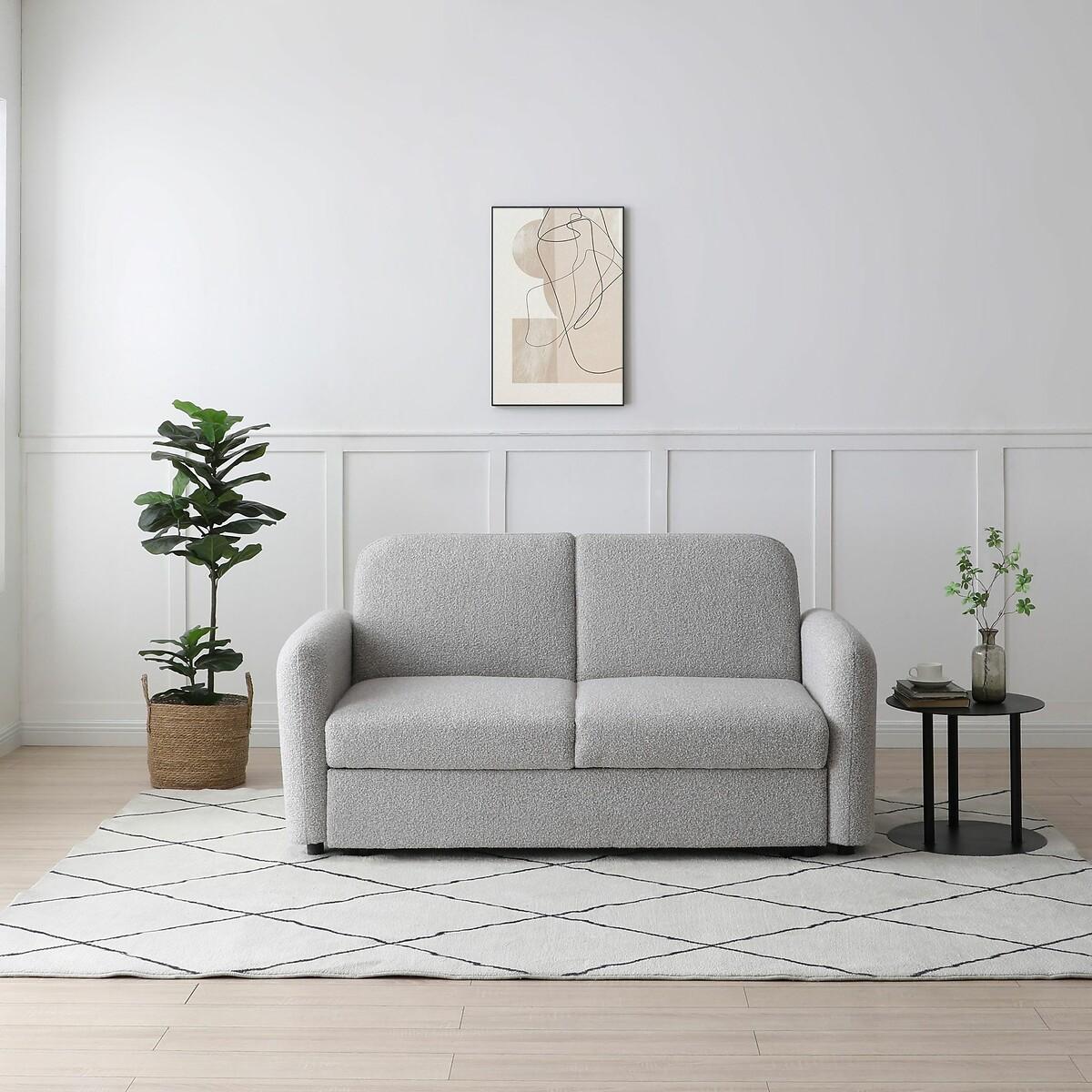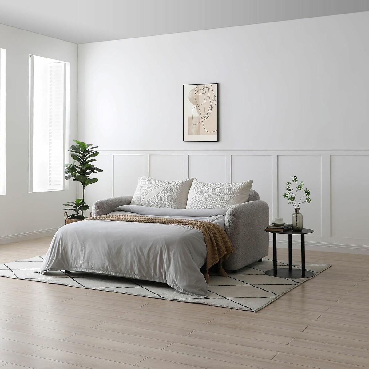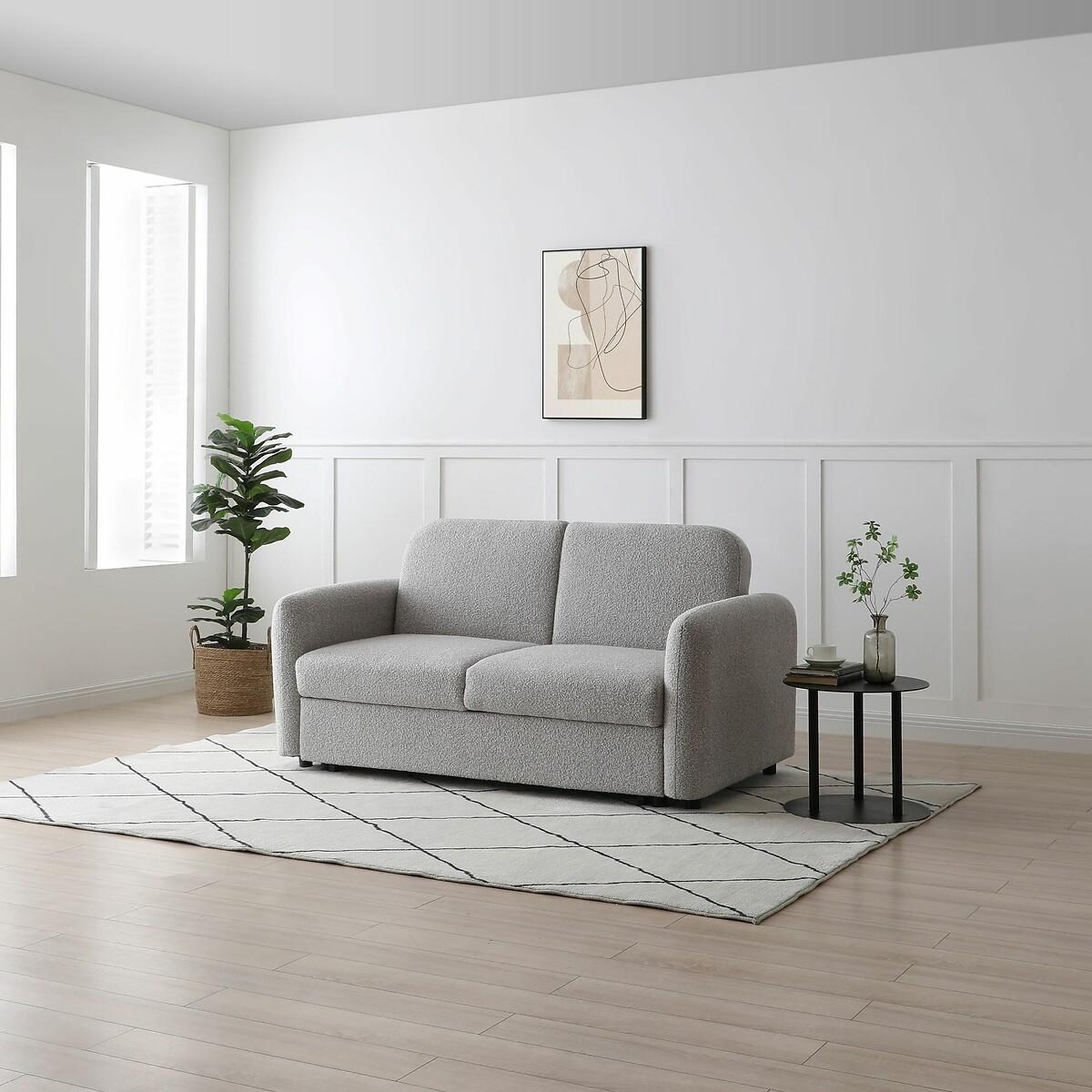 Meet the Aire -- our squishiest sofa bed yet. This curvy little number is a cosy 2-seater by day and a proper comfy guest bed by night, thanks to its easy-peasy pull-out, pop-up mechanism and clever click-clack back. No faff, just a simple swoosh from sofa to bed in seconds. Wrapped in a soft, modern boucle fabric and finished with gently rounded edges, it looks as dreamy as it feels. We’ve packed the seat cushions with pocket springs and foam for that just-right kind of squish, whether you’re curling up with a cuppa or crashing for the night, you will feel like you are sitting on a cloud. Perfect for smaller spaces, spare rooms or anywhere you fancy an extra touch of snug -- this is the sofa bed that does it all without looking like it tries too hard. Product details• Upholstered in boucle fabric• Sleeps 2• Comfort level: Soft• Full assembly required• Wipe clean with a soft cloth• 12 months maufacturers warranty. Product Composition - Fabric - 100% Polyester. Seat Filling - Foam & Polyester Fibre. Back Filling - Foam & Polyester Fibre. Product Dimensions - 171 cm x 90 cm x 88 cm , Weight 68.9 KGSeat Height: 45 cm. Back Height: 46 cm. Seat Width between arms: 141 cm. Seat Depth: 58.5 cm. Arm Height: 65 cm Clearance to floor: 6 cm. Sleeping Area: 263 cm Package Dimensions - 141 cm x 116 cm x 58 cm, Weight 76 KGThis product will be dispatched by one of our trusted suppliers. You’ll be contacted by their selected courier about your delivery. KYOTO01