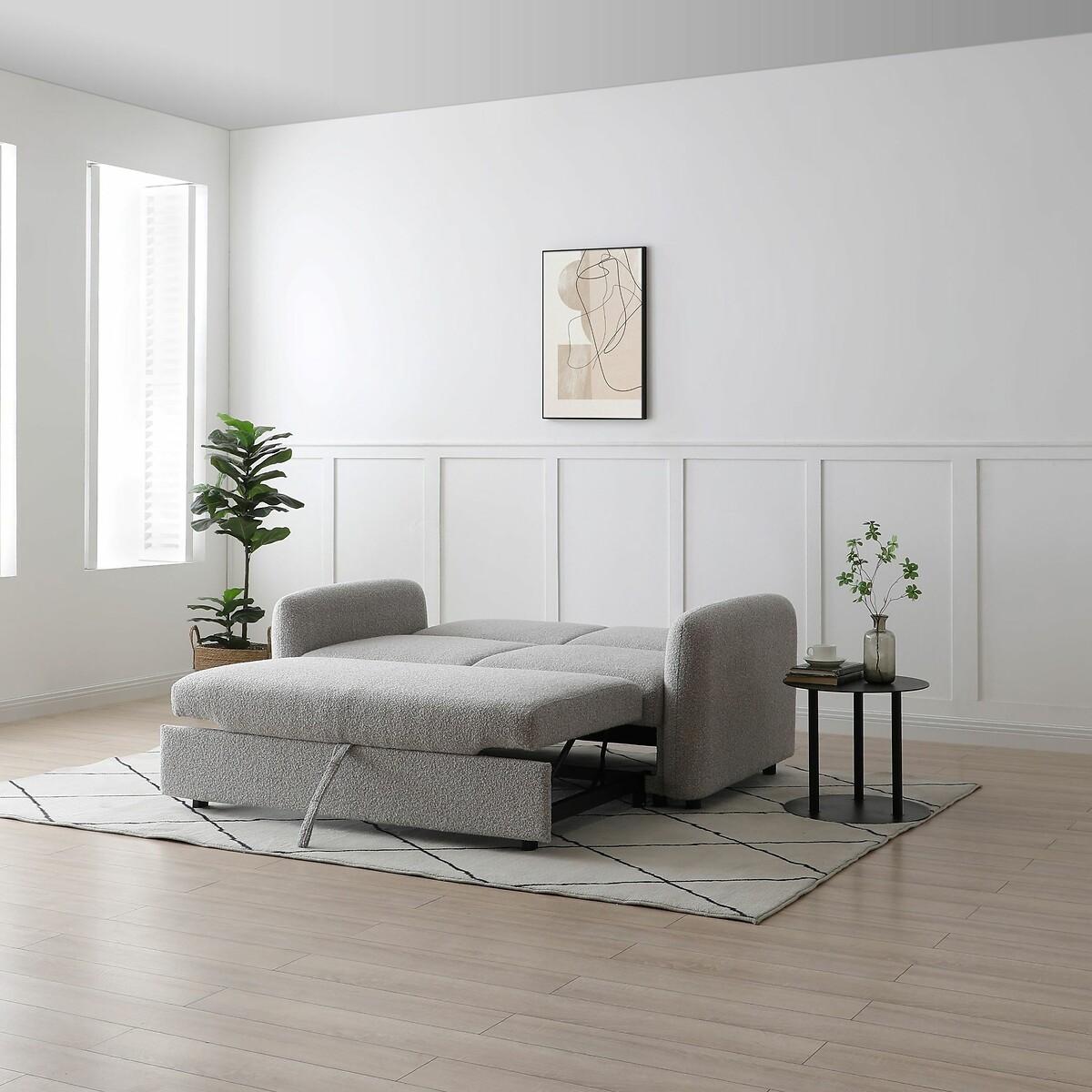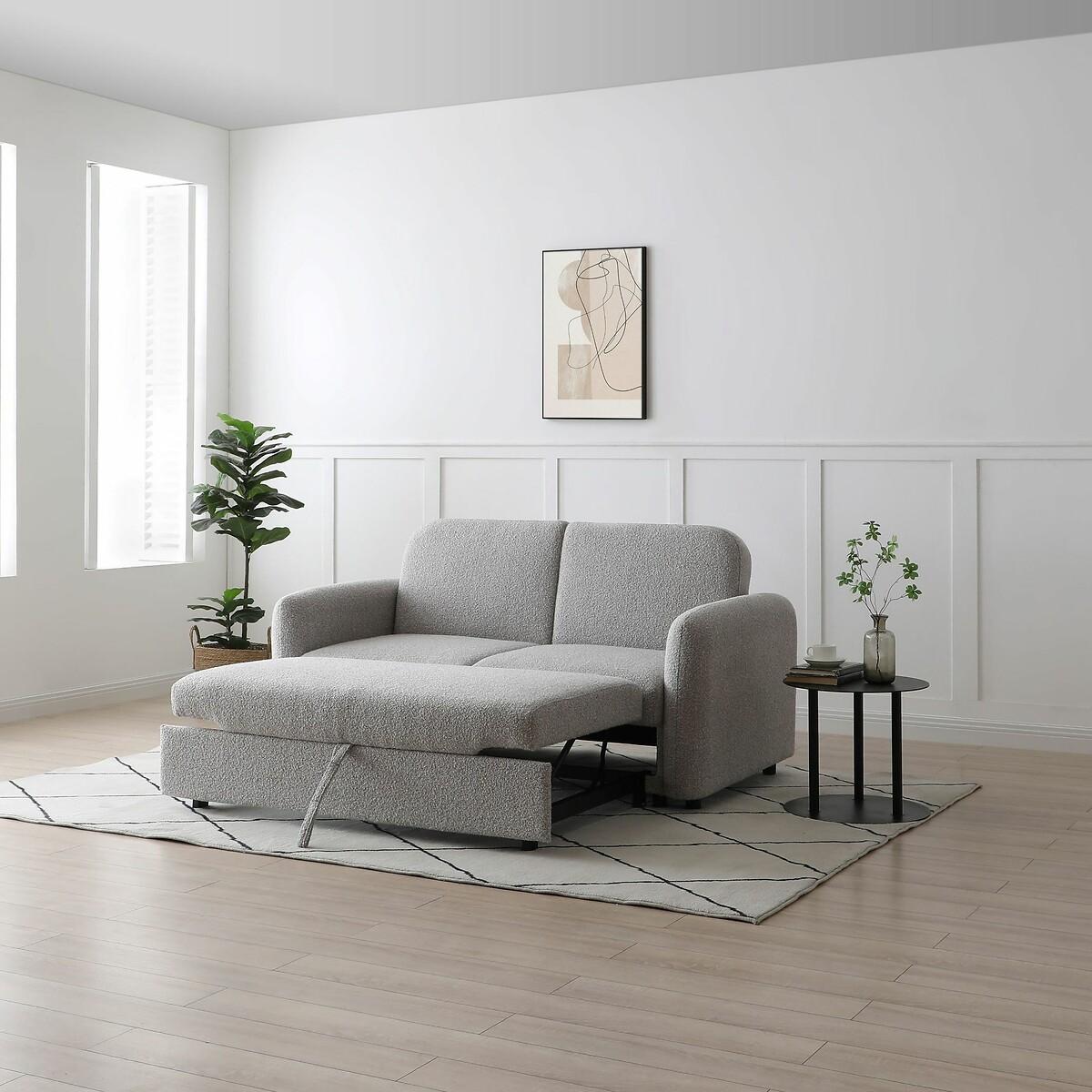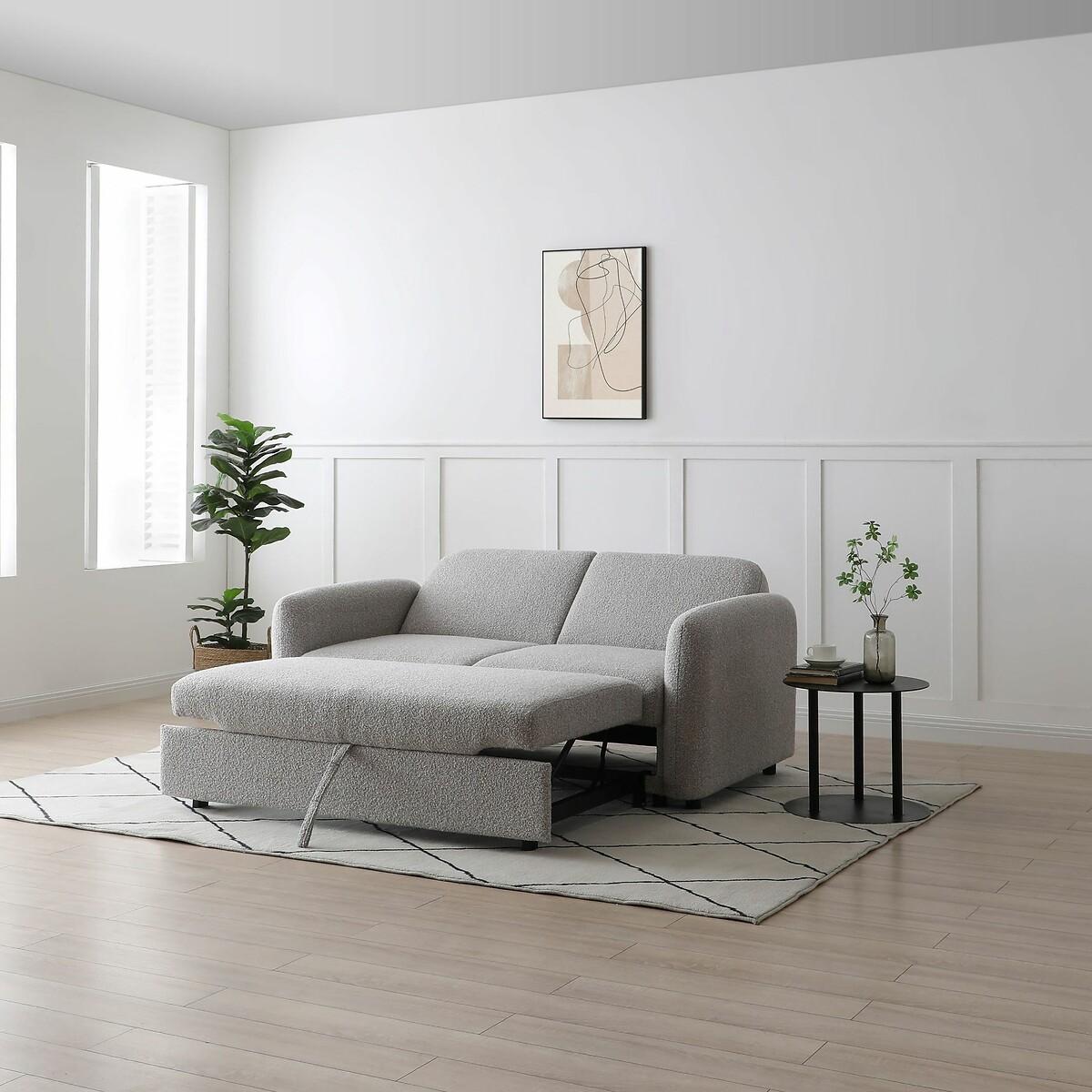 Meet the Aire -- our squishiest sofa bed yet. This curvy little number is a cosy 2-seater by day and a proper comfy guest bed by night, thanks to its easy-peasy pull-out, pop-up mechanism and clever click-clack back. No faff, just a simple swoosh from sofa to bed in seconds. Wrapped in a soft, modern boucle fabric and finished with gently rounded edges, it looks as dreamy as it feels. We’ve packed the seat cushions with pocket springs and foam for that just-right kind of squish, whether you’re curling up with a cuppa or crashing for the night, you will feel like you are sitting on a cloud. Perfect for smaller spaces, spare rooms or anywhere you fancy an extra touch of snug -- this is the sofa bed that does it all without looking like it tries too hard. Product details• Upholstered in boucle fabric• Sleeps 2• Comfort level: Soft• Full assembly required• Wipe clean with a soft cloth• 12 months maufacturers warranty. Product Composition - Fabric - 100% Polyester. Seat Filling - Foam & Polyester Fibre. Back Filling - Foam & Polyester Fibre. Product Dimensions - 171 cm x 90 cm x 88 cm , Weight 68.9 KGSeat Height: 45 cm. Back Height: 46 cm. Seat Width between arms: 141 cm. Seat Depth: 58.5 cm. Arm Height: 65 cm Clearance to floor: 6 cm. Sleeping Area: 263 cm Package Dimensions - 141 cm x 116 cm x 58 cm, Weight 76 KGThis product will be dispatched by one of our trusted suppliers. You’ll be contacted by their selected courier about your delivery. KYOTO01