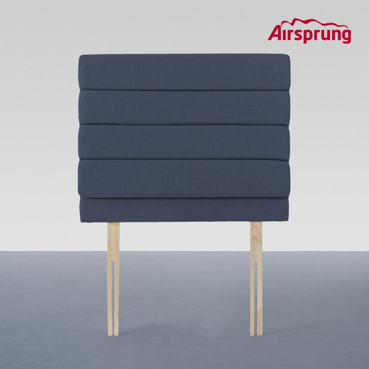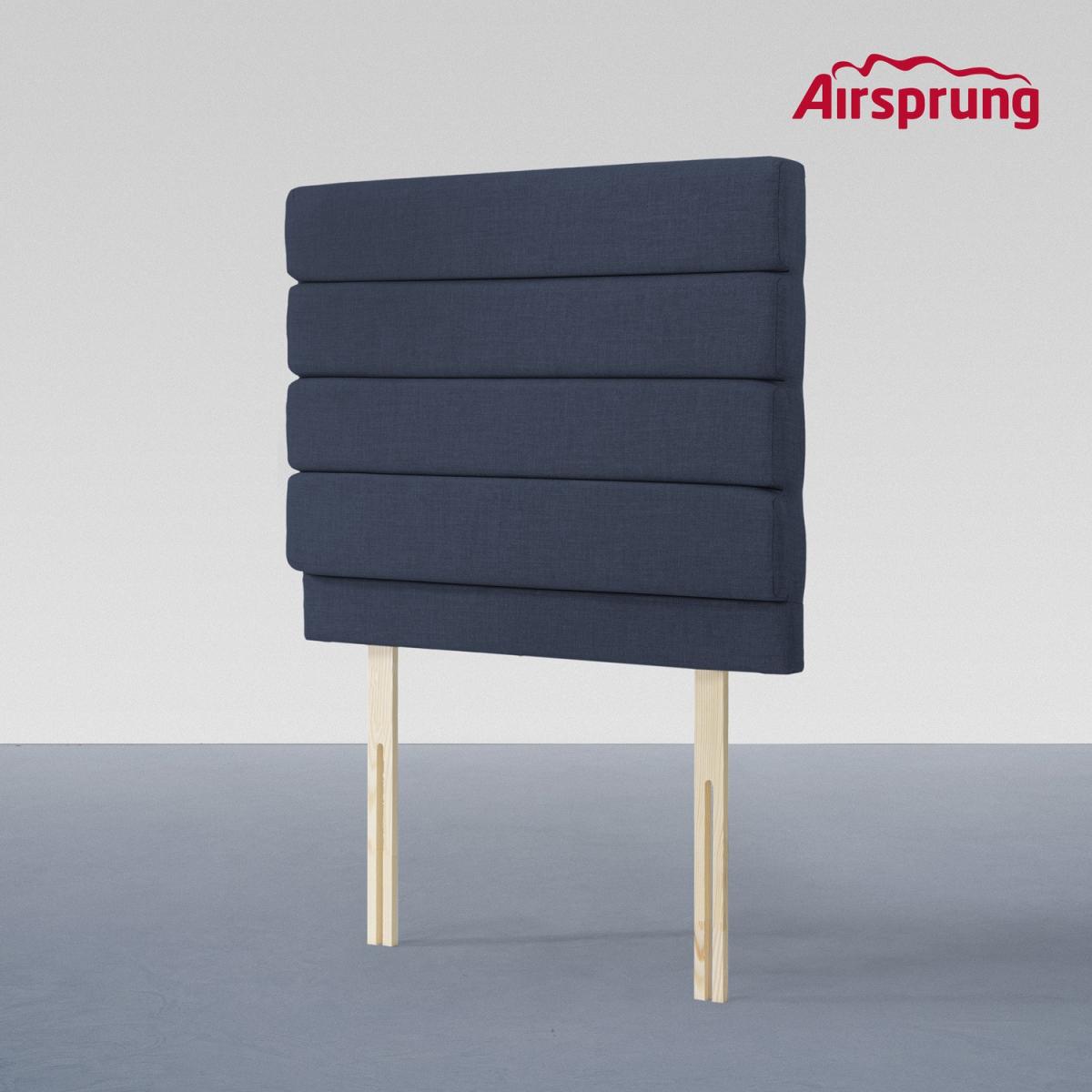 Dimensions H71 x W90 x D5.5cm Features. Colour Midnight Blue Usage Designed for all types of divan beds. Surface Linoso linen-feel upholstery fabric. Padded for comfort Height adjustable wooden struts Strutted and upholstered this signature Airsprung model is highly versatile and designed to co-ordinate with our divan range - also fits almost all divan bases. A highly popular horizontal panel theme which is both elegant and practical. Designed with a contemporary feel it is equally at home in a bedroom with either a high or lower ceiling - and because of its proportions doesn’t overpower the space. Available in Linoso linen-look fabric in a choice of two colours deep Midnight Blue or our always-popular cool Charcoal Grey Thoughtfully created to be the perfect accompaniment to our mattresses or divan base DELIVERY RESTRICTIONS . Please note we are only able to ship Airsprung to UK Mainland postcodes. We are unable to ship to Ireland Northern Ireland Scottish Highland or the Channel Islands. .