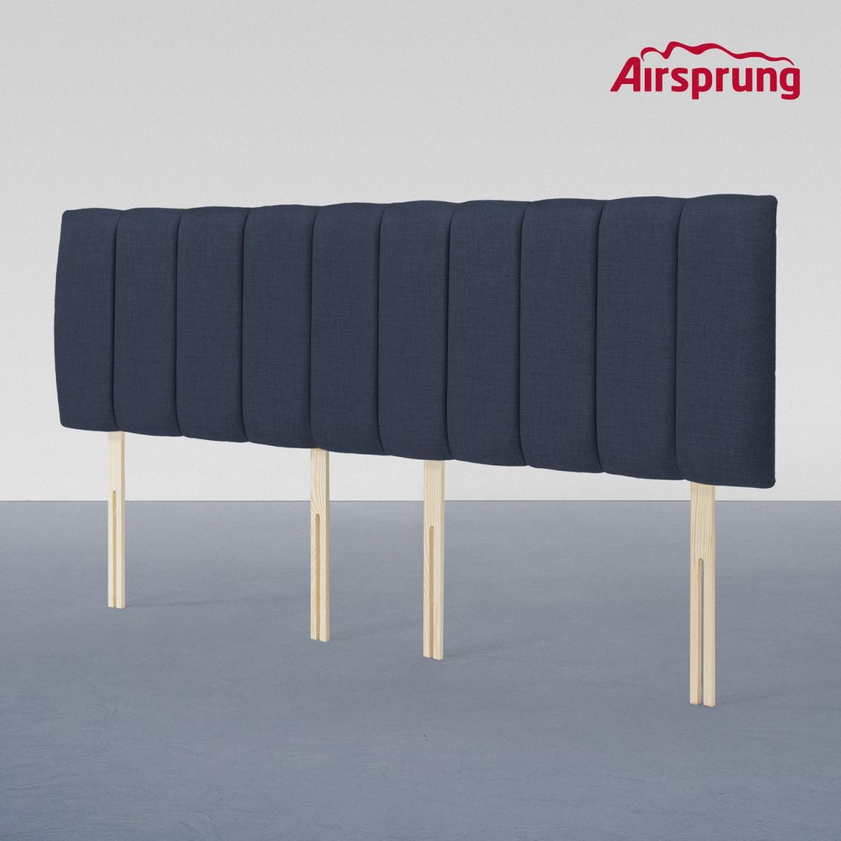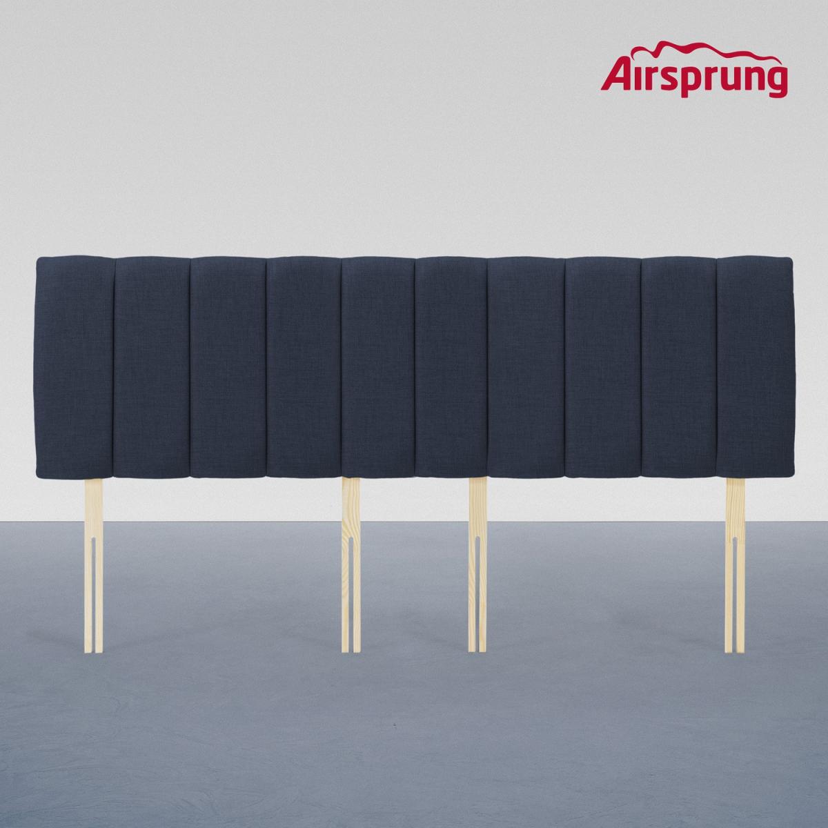 Dimensions H50 x W180 x D5.5cm Features. Colour Midnight Blue Usage Designed for all types of divan beds. Surface Linoso linen-feel upholstery fabric. Padded for comfort Height adjustable wooden struts Strutted and upholstered this signature Airsprung model is highly versatile and designed to co-ordinate with our divan range - also fits almost all divan bases. An elegant vertically-themed geometric design which looks terrific in just about every bedroom setting. Available in Linoso linen-look fabric in a choice of two colours deep Midnight Blue or our always-popular cool Charcoal Grey Thoughtfully created to be the perfect accompaniment to our mattresses or divan base DELIVERY RESTRICTIONS . Please note we are only able to ship Airsprung to UK Mainland postcodes. We are unable to ship to Ireland Northern Ireland Scottish Highland or the Channel Islands. .