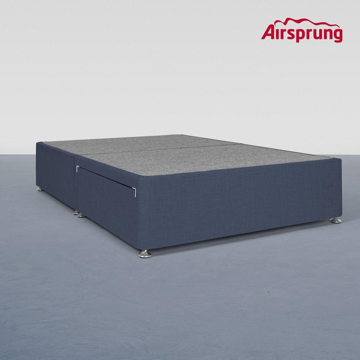Dimensions H37 x W135 x D190cm Features. Colour Midnight Blue Storage 2 drawers Divan Base Softwood frame Surface Linoso linen-feel upholstery fabric Divan Feature Silver glides for easy movement. Matching headboard available separately Require some clever extra storage space? You’ve got it in 2 drawer or 4 drawer option - or if simply looking for a platform base for your mattress with no drawers then all options are available here. Covered in our carefully selected Linoso linen-feel upholstery fabric – available in a choice of two colours deep Midnight Blue or our always-popular cool Charcoal Grey. This Kelston divan is fitted with low glides rather than legs. It makes it so much easier to move around saves things getting lost underneath DELIVERY RESTRICTIONS . Please note we are only able to ship Airsprung to UK Mainland postcodes. We are unable to ship to Ireland Northern Ireland Scottish Highland or the Channel Islands. .