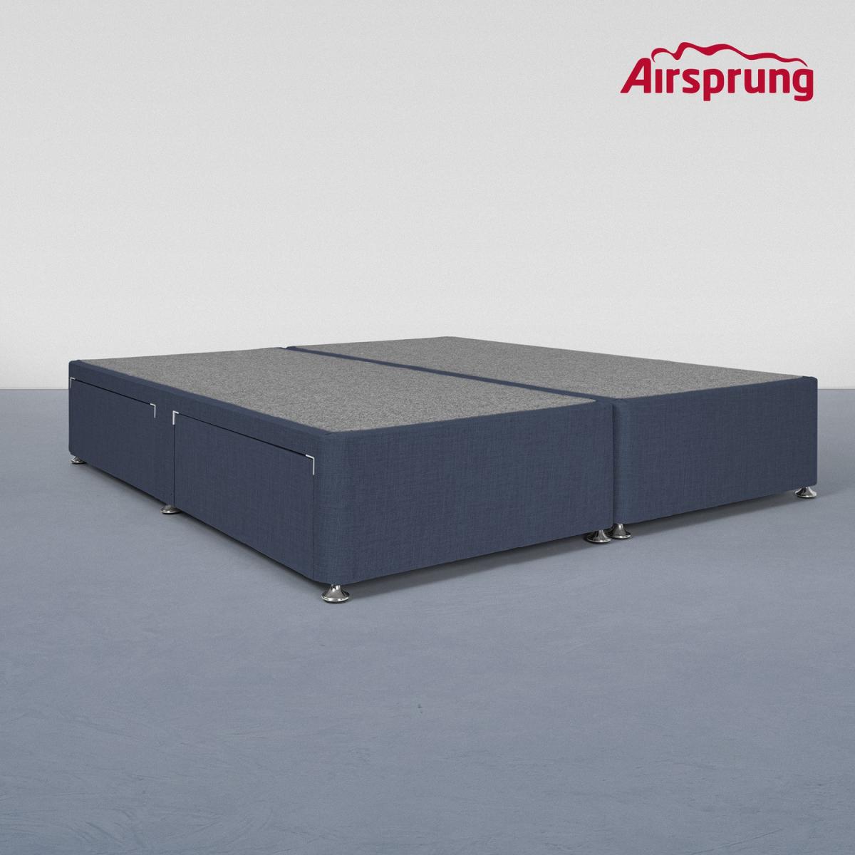 Dimensions H37 x W180 x D200cm Features. Colour Midnight Blue Storage 4 drawers Divan Base Softwood frame Surface Linoso linen-feel upholstery fabric Divan Feature Silver glides for easy movement. Matching headboard available separately Require some clever extra storage space? You’ve got it in 2 drawer or 4 drawer option - or if simply looking for a platform base for your mattress with no drawers then all options are available here. Covered in our carefully selected Linoso linen-feel upholstery fabric – available in a choice of two colours deep Midnight Blue or our always-popular cool Charcoal Grey. This Kelston divan is fitted with low glides rather than legs. It makes it so much easier to move around saves things getting lost underneath DELIVERY RESTRICTIONS . Please note we are only able to ship Airsprung to UK Mainland postcodes. We are unable to ship to Ireland Northern Ireland Scottish Highland or the Channel Islands. .