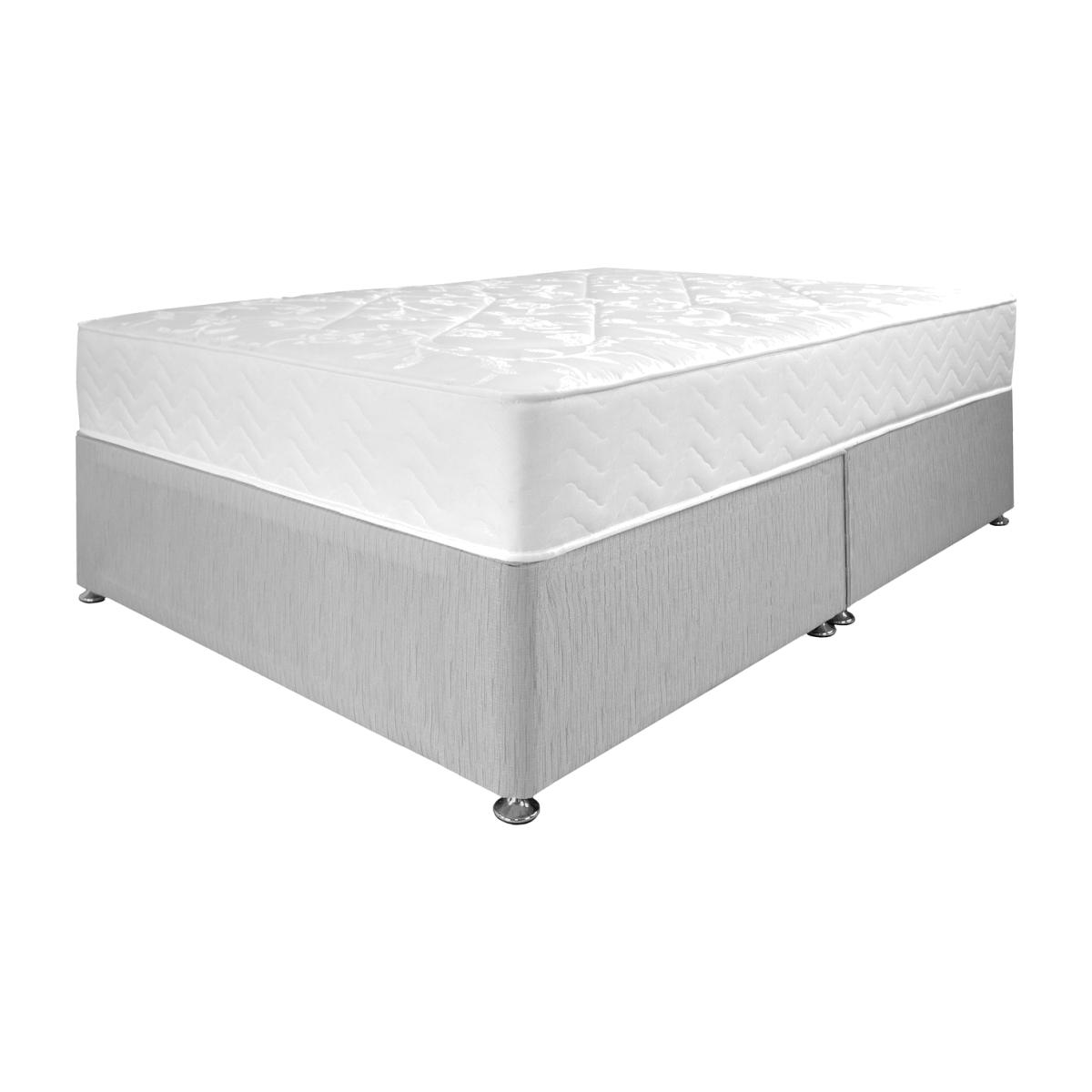 Dimensions L200 x W150 x D67 cm. The Ortho Premium mattress and divan set showcases the extra deep Airsprung Supercoil® Plus spring mattress giving the whole unit a majestic look. The Ortho Premium is topped with a striking woven damask on both sleeping surfaces and features a free-flowing botanical design. Many generous layers of soft fillings coupled with the firmer framed Supercoil® spring unit offers excellent comfort and support to your body throughout the night. Of sturdy all-timber construction the divan base is made using the very best materials and demonstrates the highest standards of workmanship. Stylish silver glides add a touch of extra class to finish the look. The Ortho Premium is turnable and we recommend you turn and rotate your mattress on a regular basis for even wear and to prolong the life of your purchase. Matching Utah headboard available separately. Features. Firmness Rating Firm. Sleeping Surface High quality damask quilted for comfort Mattress Core Supercoil® Plus spring unit - For extra support. Comfort Layer Soft white fillings for added comfort Guarantee 5 Years Mattress Care Keep your mattress in tip top condition by flipping and rotating on a regular basis Mattress Depth 28cm..