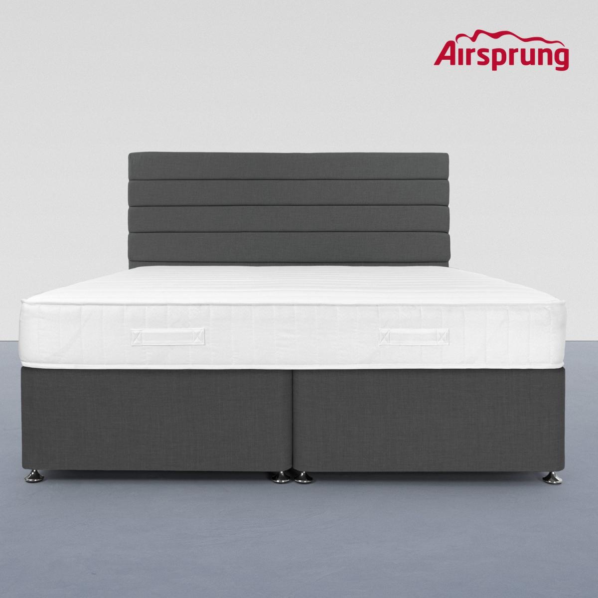 Dimensions H62 x W180 x D200cm Features. Mattress Firmness Medium/soft feel. Comfort layers Contains recycled materials. Sleeping Surface Soft feel knit. Mattress Care Non turn. Matching Headboard available separately Divan Base Wooden frame covered in Linoso linen-feel upholstery fabric Cleverly 1000 movement-reducing individual mini pocket springs sit on top of Airsprung’s Supercoil® spring system. So that’s double springs in one mattress! Available here with the Kelston divan base with a choice of various storage options and two designer-chosen colours. This HYBRID model has soft sumptuous 80% recycled polyester fillings and is non turn for extra convenience; do rotate it occasionally as it preserves its longevity. DELIVERY RESTRICTIONS . Please note we are only able to ship Airsprung to UK Mainland postcodes. We are unable to ship to Ireland Northern Ireland Scottish Highland or the Channel Islands. .